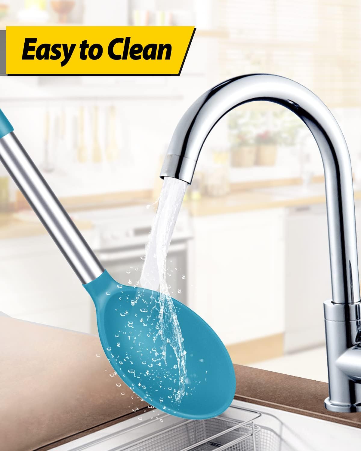 - More Safe and Healthy : Our silicone spoons are made of food-grade silicone, free of BPA;Even at high temperatures, there is no need to worry about melting or deforming;And the soft silicone head won't scratch the coating, it can better protect your pot