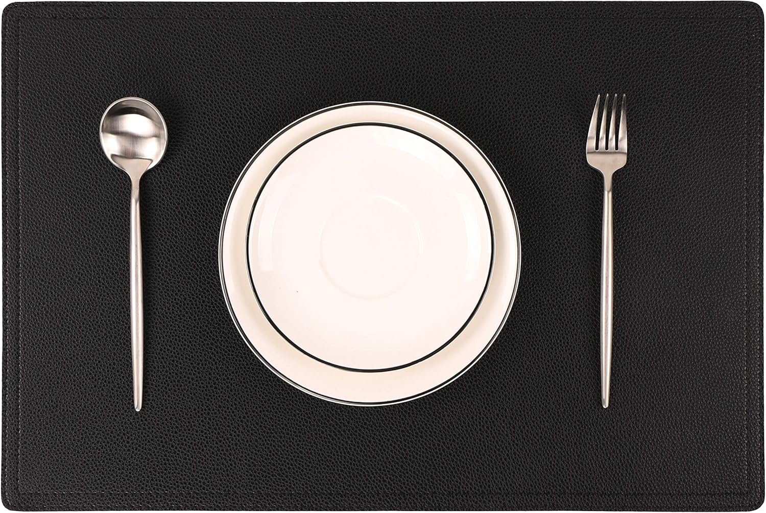 Set of 8 Faux Leather Placemats, PU Table Mats, Waterproof, Stain Resistant, Heat Resistant, Easy to Clean for Kitchen Dining Table,Conference Table C Black Rectangle