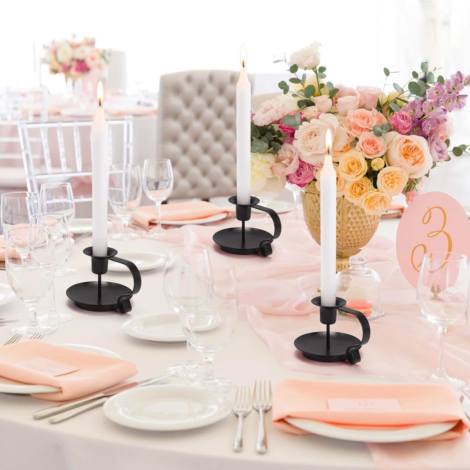 - Vintage Chamberstick Design – Inspired by antique candle holders, this black metal taper candle holder features a handle for easy carrying and a timeless farmhouse look
