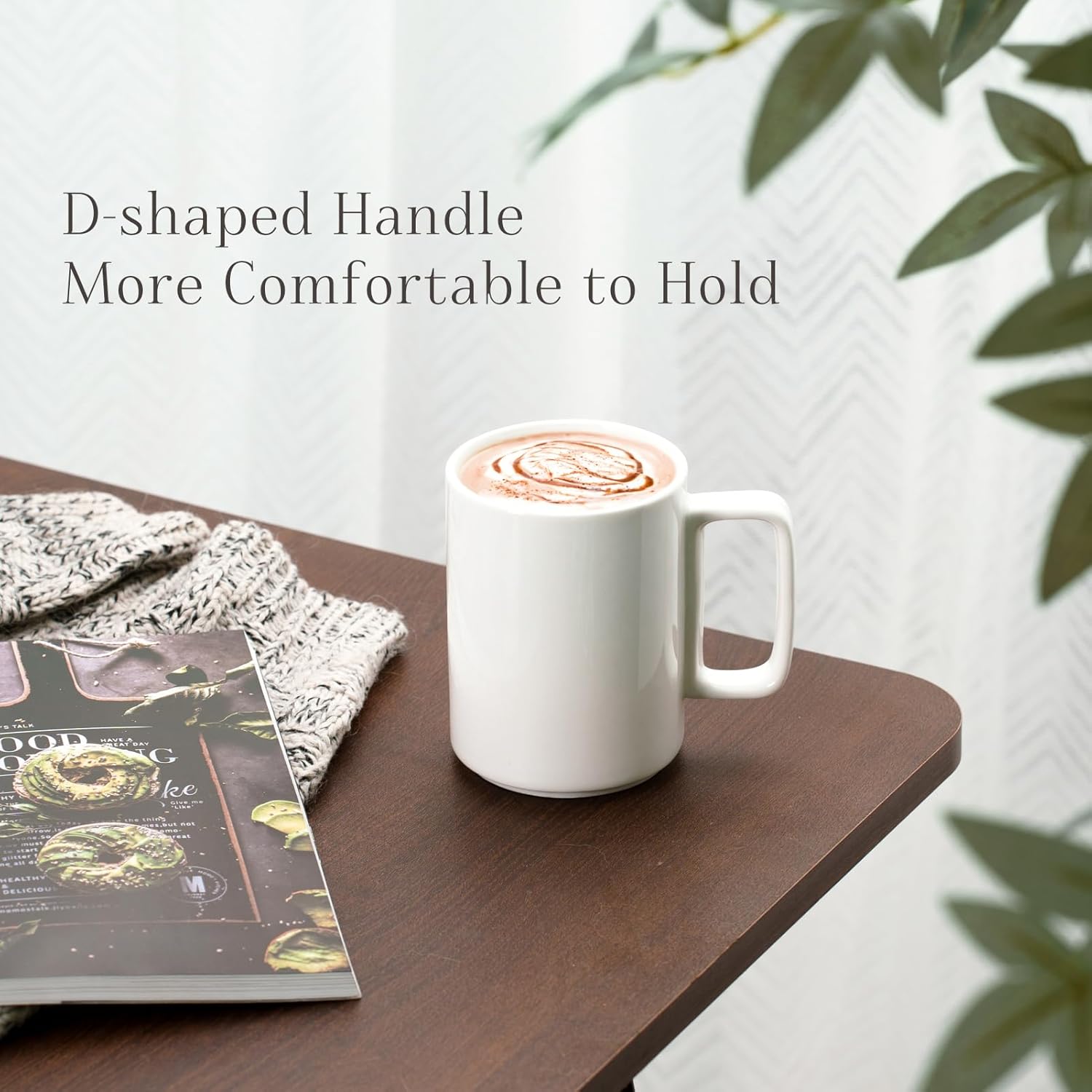 E-liu Porcelain Tea Mugs Coffee Mug Set, Large 15 Ounces Cups for Coffee, Tea, Cocoa, and Mulled Drinks, Set of 6, White