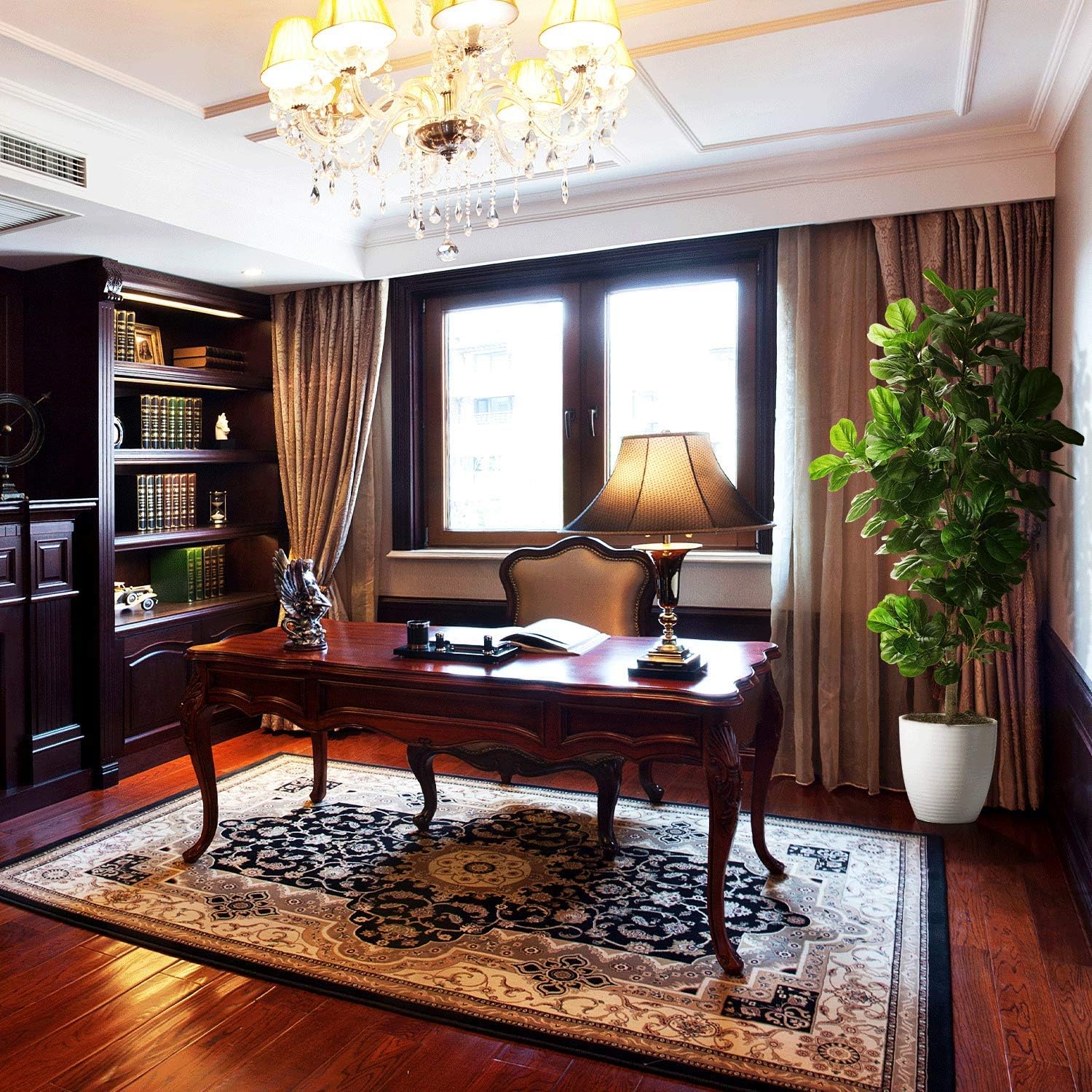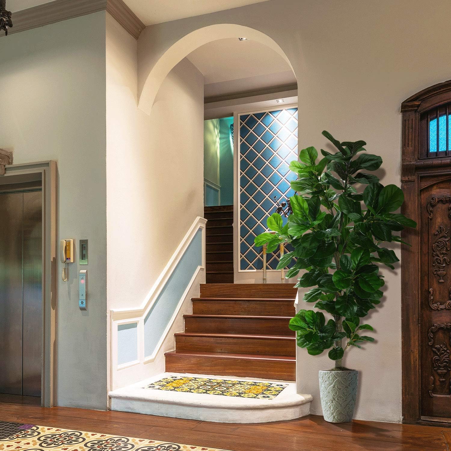- 【BEST DECORATIONS】 Carefully crafted to mimic the appearance of a real-life Fiddle Leaf Fig Tree, looking as close to reality as possible, perfect for any room or office and outdoor decor, this fake fig tree will let you feel the presence of nature. All seasons are green. Perfect housewarming gift.