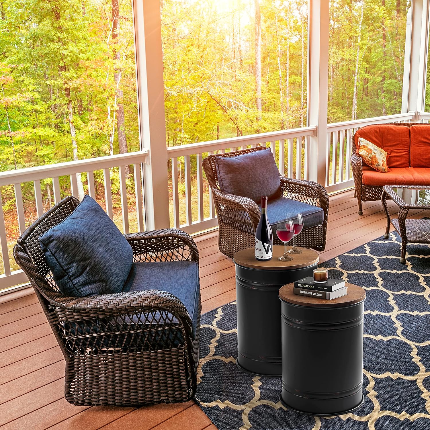 - 【Hidden Extra Storage Stools】: As Side Table, Stools, Storage, Ottoman and Seat for your couch or sofa even a nightstand in your bedroom. Barrels stack into one another is perfect for storage blankets, pillows, throws, dog food, cat food, books etc.