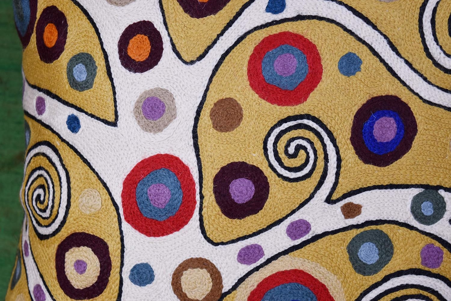 - These unique,hand embroidered, seamless and modern pillow covers would bring together the artistic elements of any room, creating a harmonious design and perfect air of sophistication.A close-up view of this abstract pillow cover allows you to see the amazing chain-stitch hand embroidery work done by the master artisans.