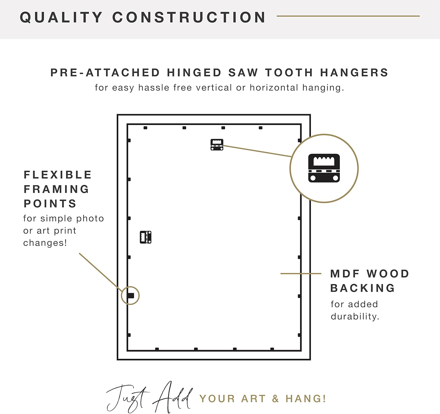 - EASY TO USE: Each frame includes a natural corrugate back with pre-attached sawtooth hangers for easy vertical or horizontal hanging; Just add your artwork and hang