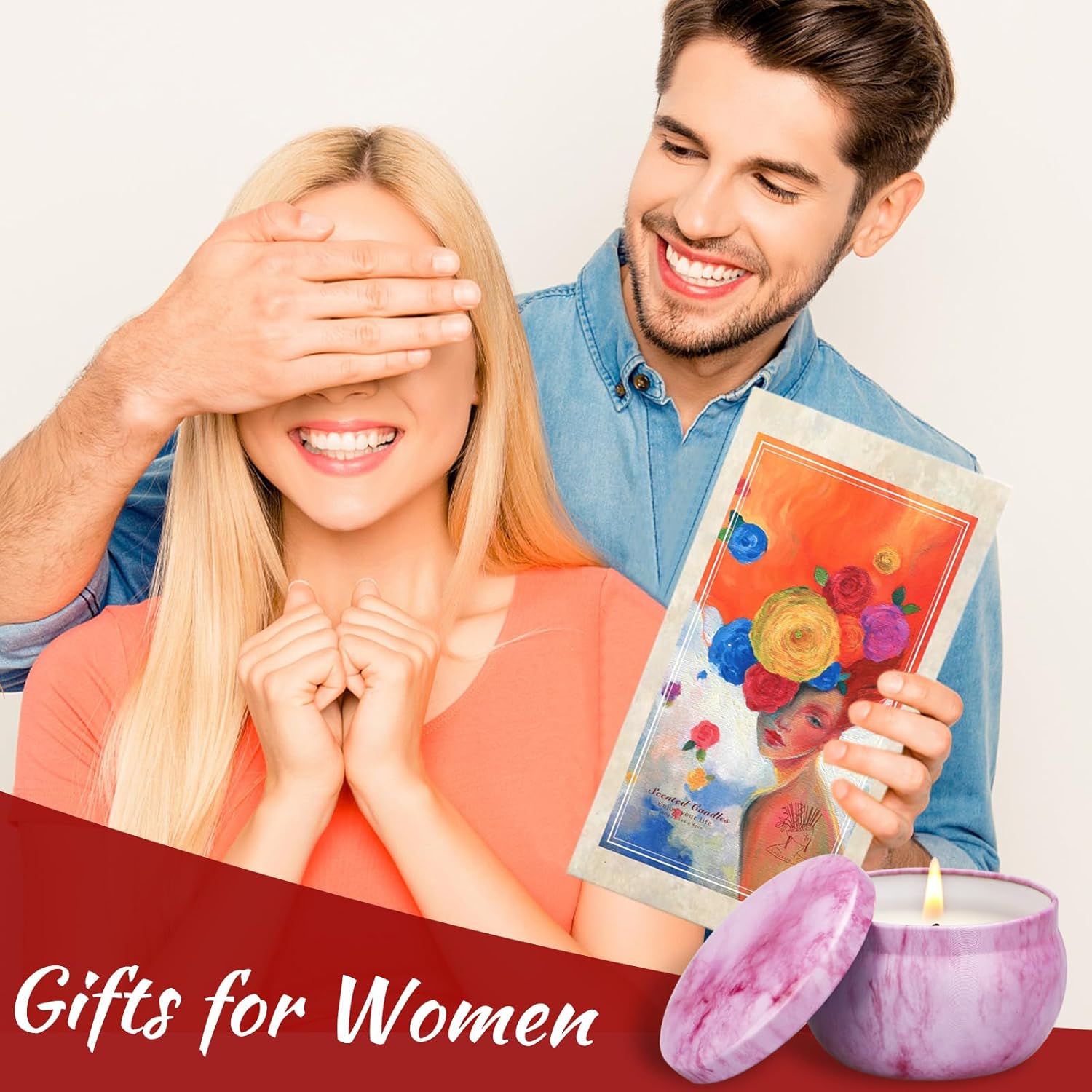 - ā Scented Candles Gifts Set Choice ā Candles for home scented gifts come with 8 pack aromatherapy, scented candles gifts set for women use elegant art style, small aromatherapy candle set gifts for women, mother, girlfriend, wife, mom, grandmother, daughter, every woman love 8 pack scented candles gift set. Valentine candles gifts for women āare a really nice choice, scented candles set gifts for Mothers Day, Valentine's Day, Birthday, Anniversary, Christmas Day, and Thanksgiving!