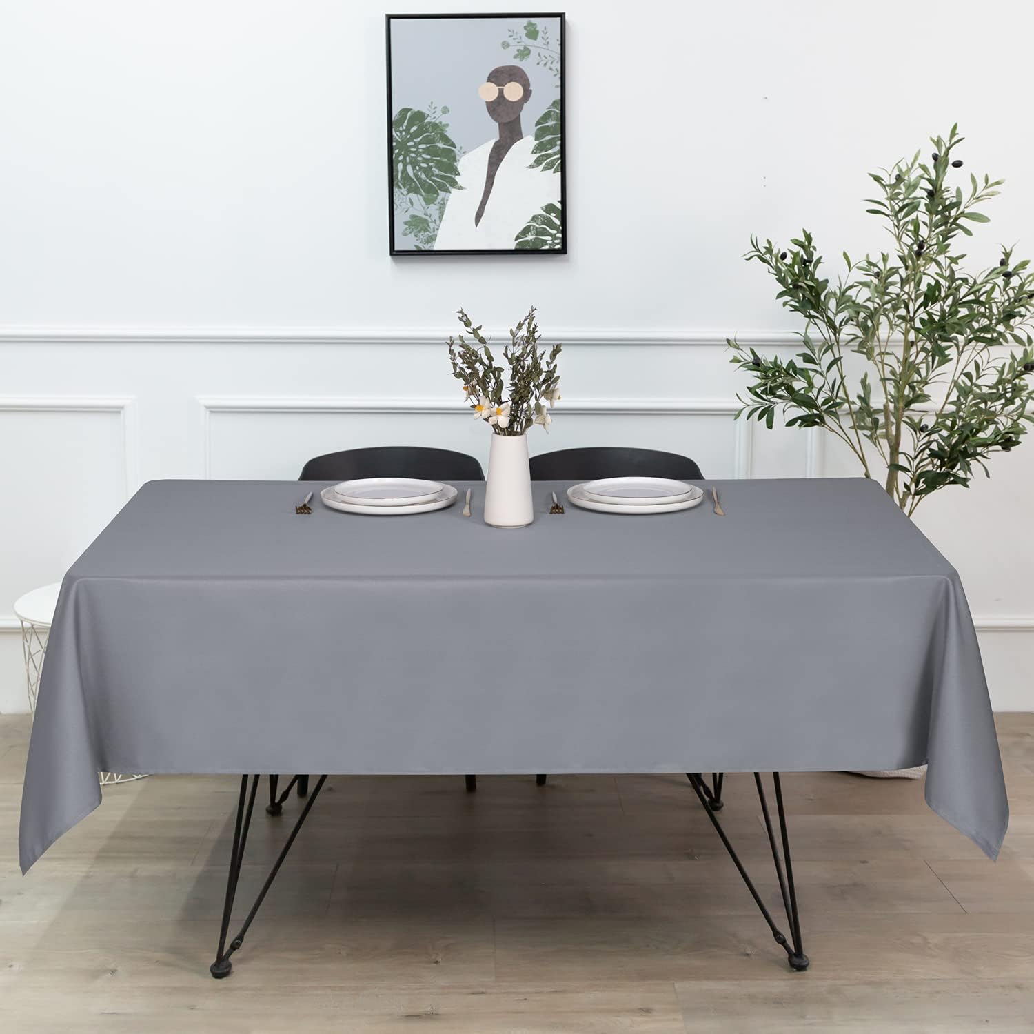 sancua Rectangle Tablecloth - 70 x 108 Inch - Stain and Wrinkle Resistant Washable Polyester Table Cloth, Decorative Fabric Table Cover for Dining Tables, Buffet Parties and Camping, Light Grey