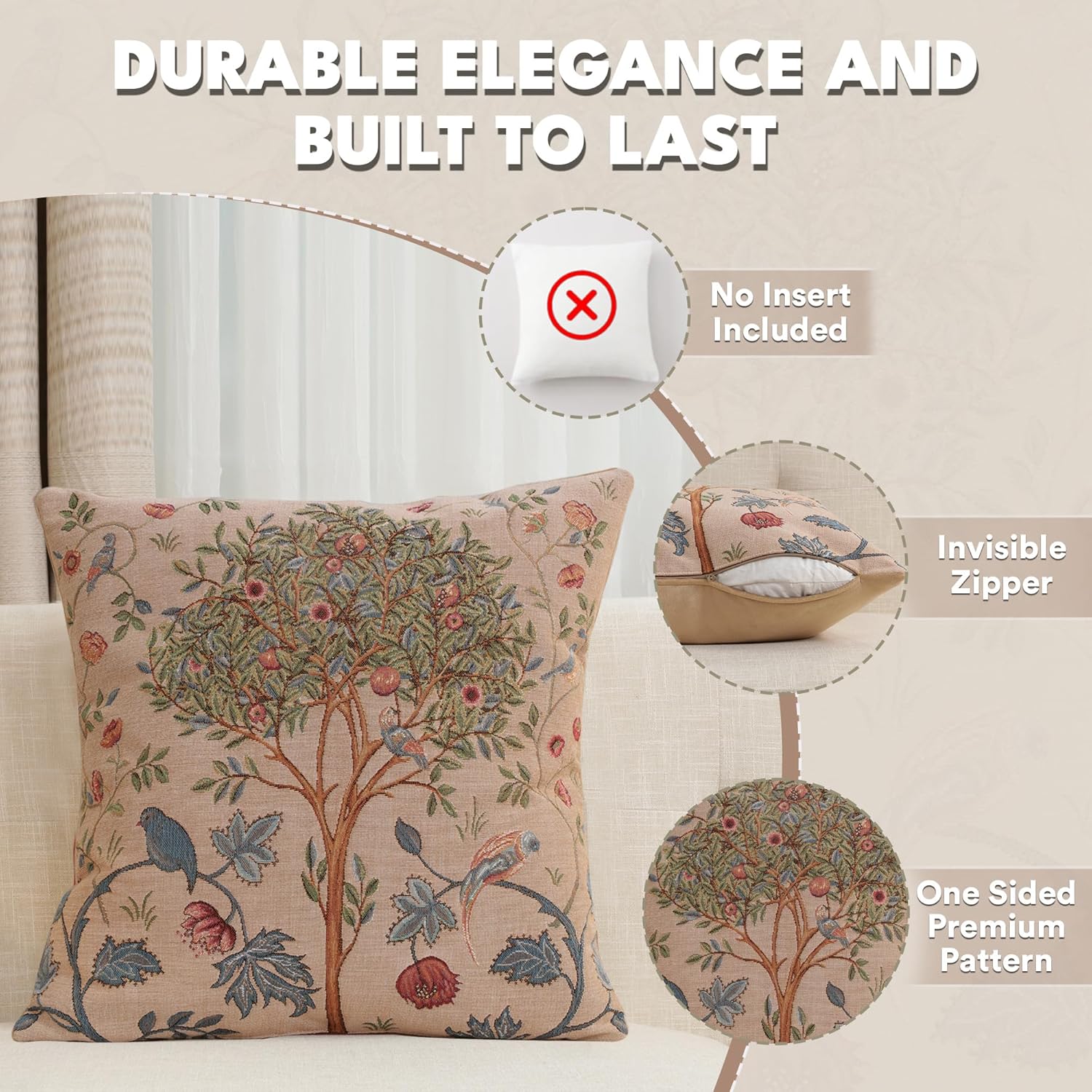 - Timeless Durability: Elevate your decor with our skin-friendly William Morris pillow covers 19”X19”, where quality and style come together. A sturdy hidden zipper ensures easy pillow insertion/removal, while the overlock stitches prevent seam ripping. Unlike thin printed cushion covers prone to tearing, our decorative pillows for couch with a super-soft backside are crafted with thick premium threads for long-lasting quality. THE PACKAGE INCLUDES A SINGLE TAPESTRY PILLOW COVER WITHOUT AN INSERT