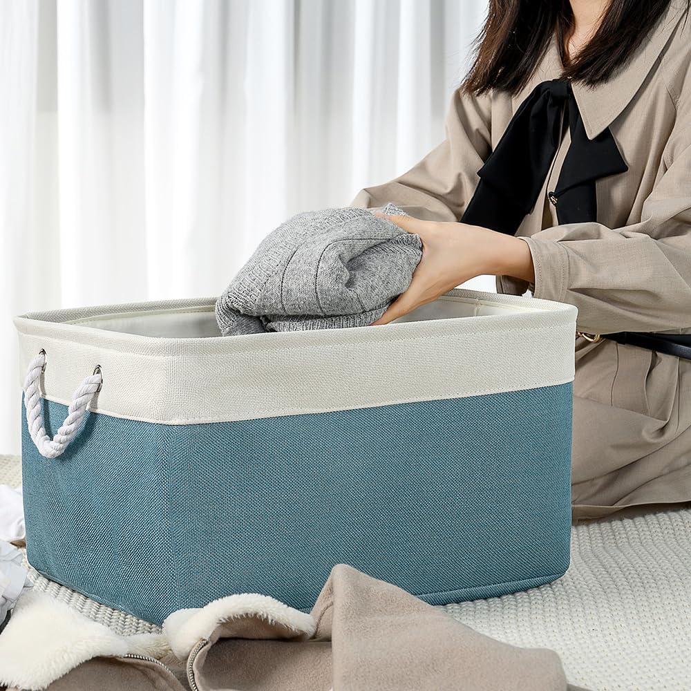 - HANDMADE STICHED & STURDY - TheWarmHome fabric storage bins outside fabric is made of more linen & thicken Environmental EVA, and used a lining material for the inside, Semi handmade stitched. Sturdy metal rod frame around the top keep the basket shape. Strong seams and rope side handles, make this storage baskets are sturdy and easy to grab. Stand up great on their own even unfilled and ensure a greater product lifespan.