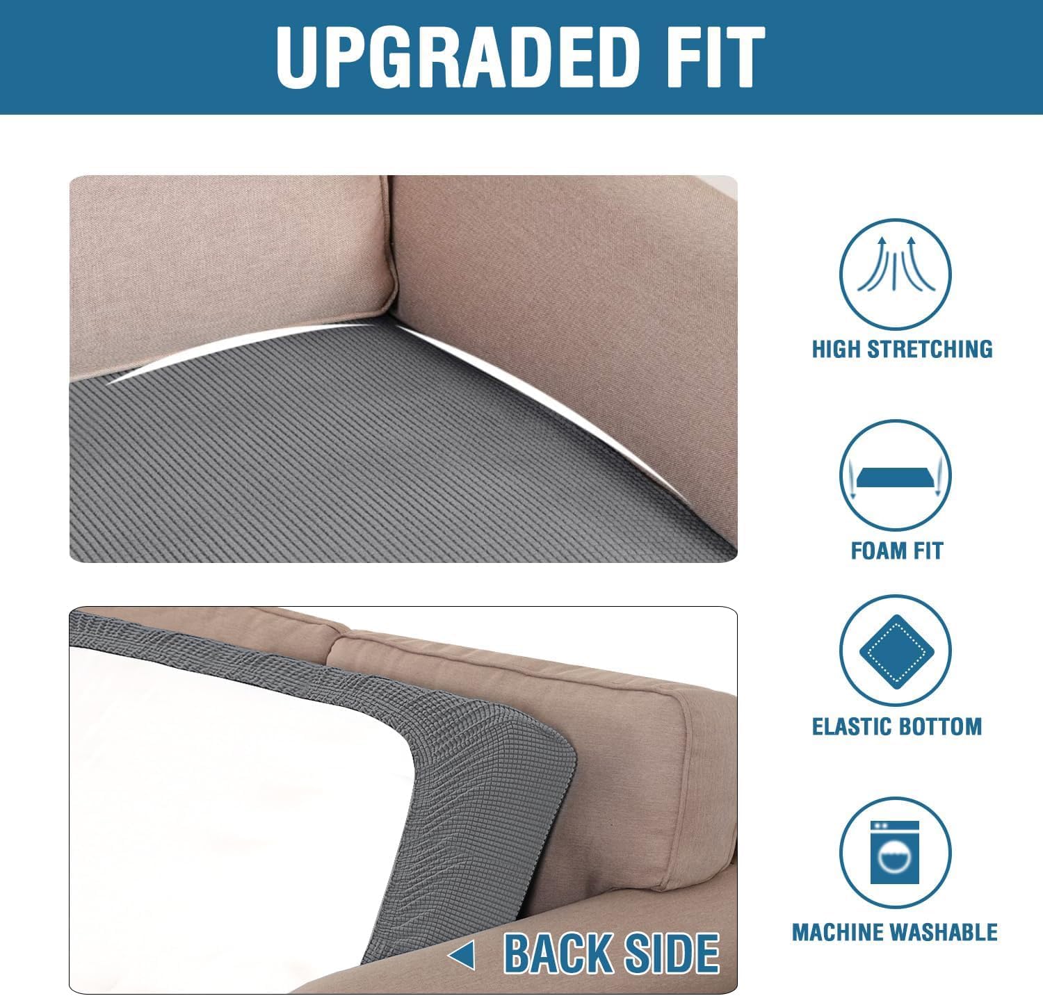 H.VERSAILTEX Super Stretch Individual Seat Cushion Covers, Thick Jacquard Textured Twill Fabric (3 Piece XL Sofa Cushion Covers, Grey)