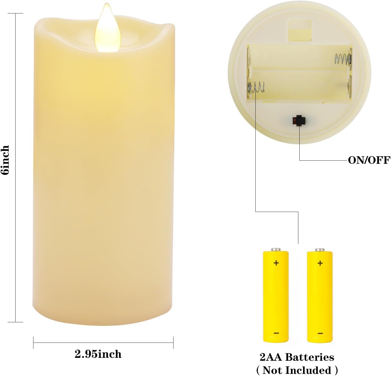 - 【VERSATILE BATTERY CANDLE SET】2 exquisite led candles(H 6" x D 2.95") & 1 remote with timer function. Great decor for parties, barbecues, weddings, churches and holiday. If any quality problems, feel free to get in touch with us to get a solution