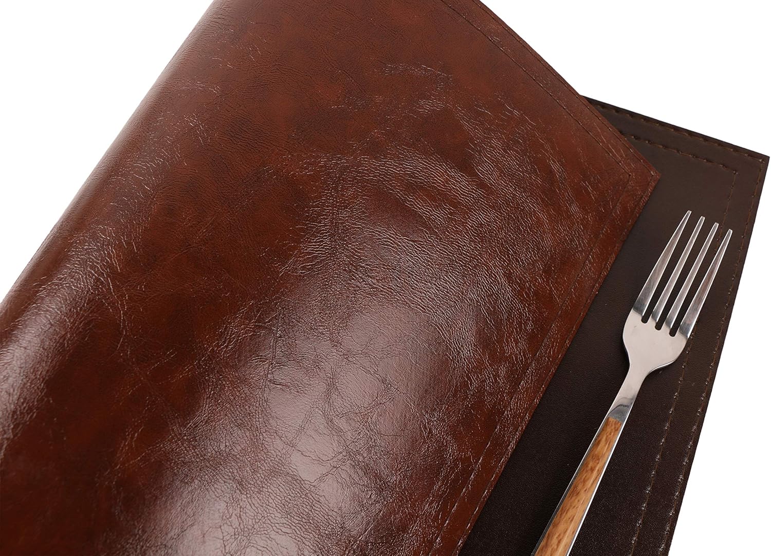 Waterproof PU Placemats, Faux Leather Dining Table Mat, Set of 6, Easy to Wipe Off Scrub Vinyl Mat, Heat & Stain Resistant for Office Conference Table, Home Decor