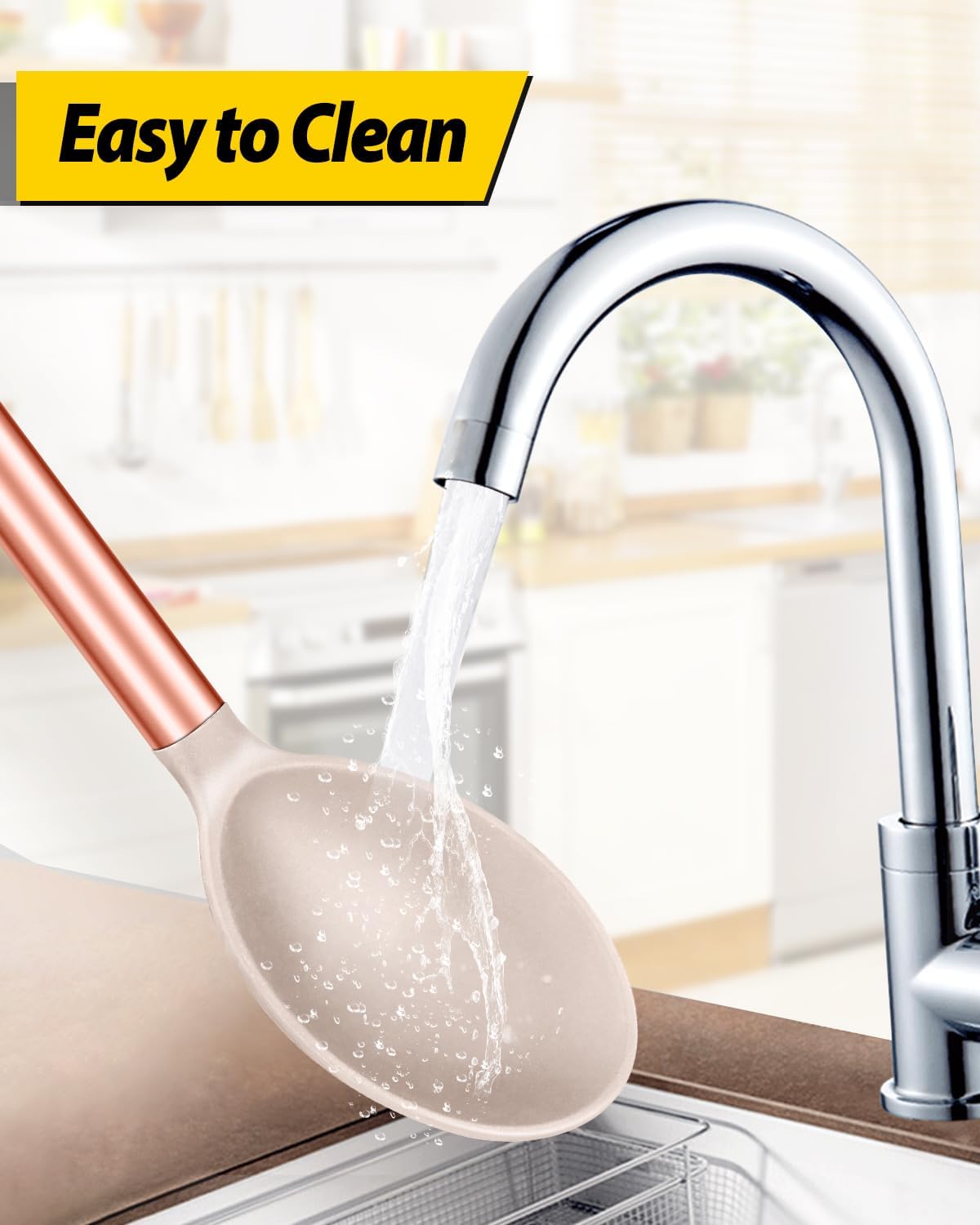 Pack of 2 Large Silicone Cooking Spoons,Non Stick Solid Basting Spoon,Heat-Resistant Kitchen Utensils for Mixing,Serving,Draining,Stirring (ROSE GOLD KHAKI)