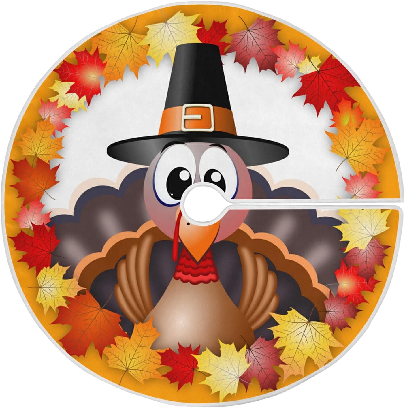 Thanksgiving Turkey Maple LeafTree Skirt, Seasonal Tree Mat Holiday Party Supplies Ornaments Indoor Outdoor Decorations for Tabletop Trees 47.2 Inches