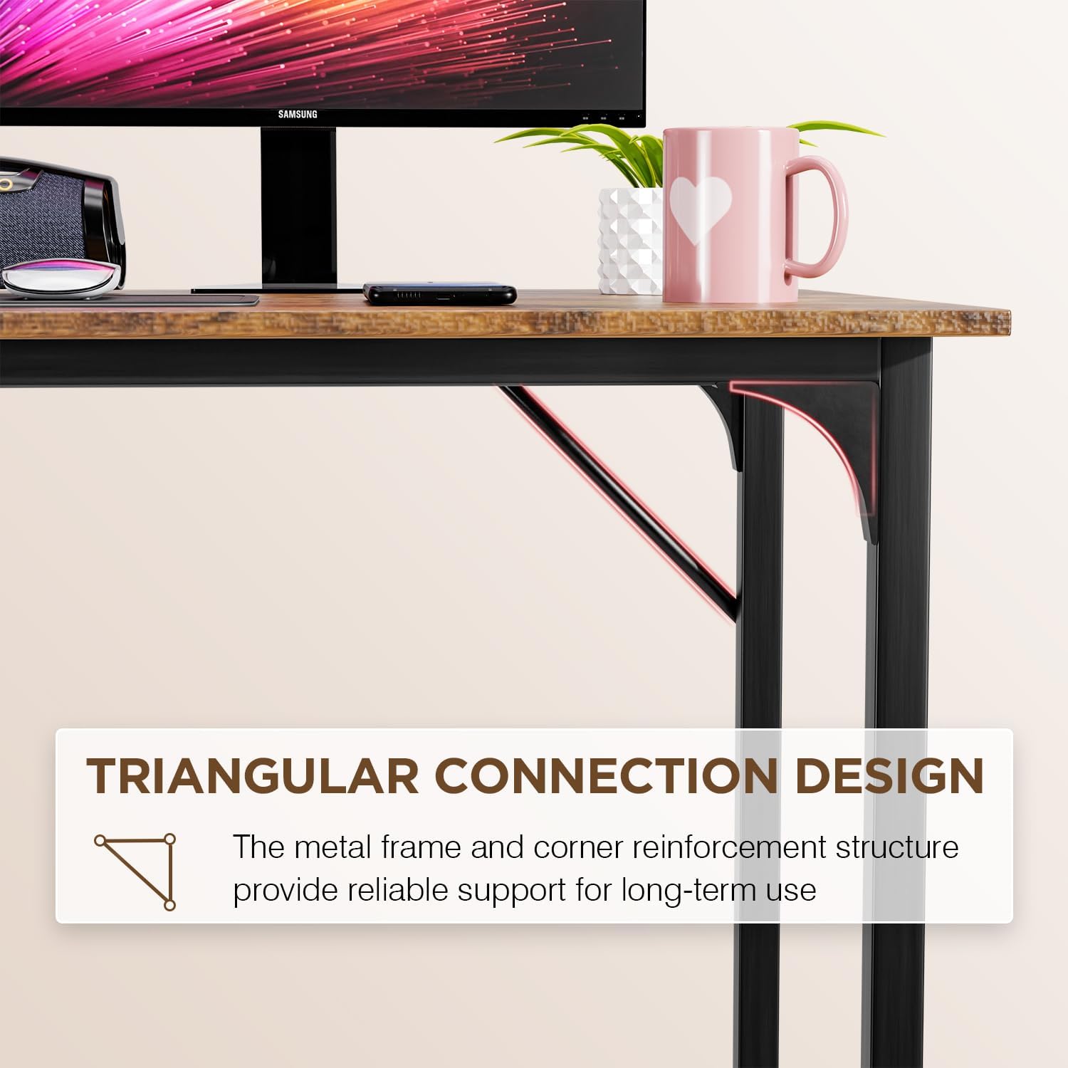 - STURDY DESIGN: Equipped with anti-slip feet and a triangular metal frame, this small desk delivers wobble-free support, making it a great option for a kids desk or gaming desk in any space.