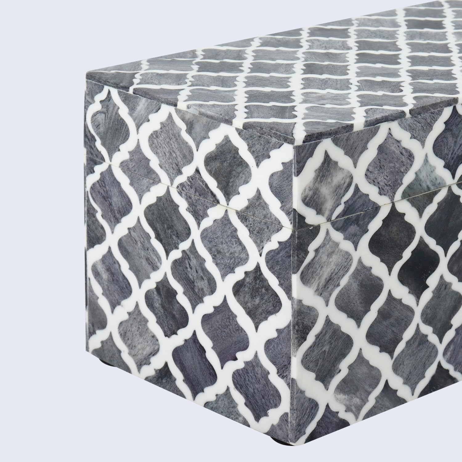 - Elegant Design: Crafted with intricate bone inlay patterns, resin accents, and a sturdy pine MDF frame, this decorative storage box brings sophistication and style to any room or decor.