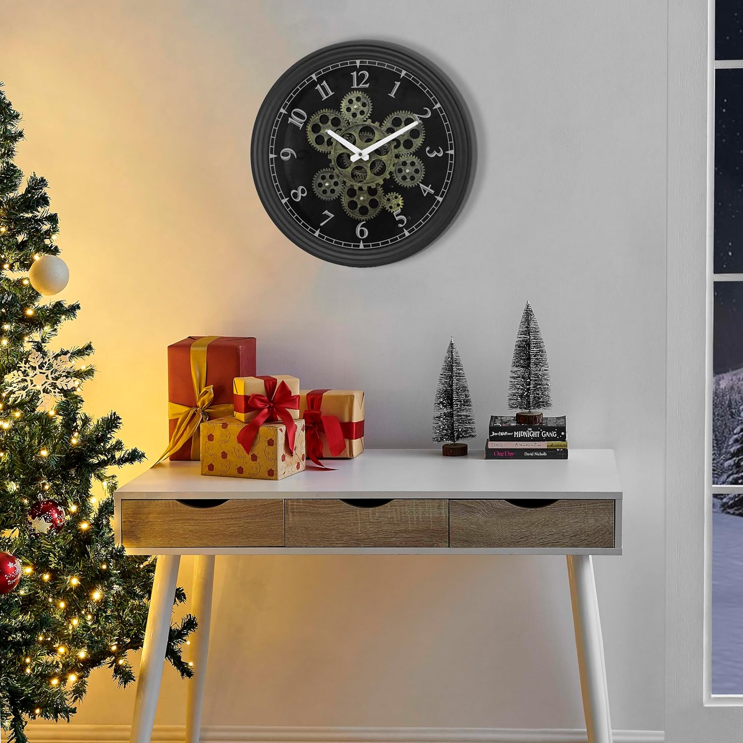 - Special Feature : Large Display, Real Moving Gear Wall Clock
