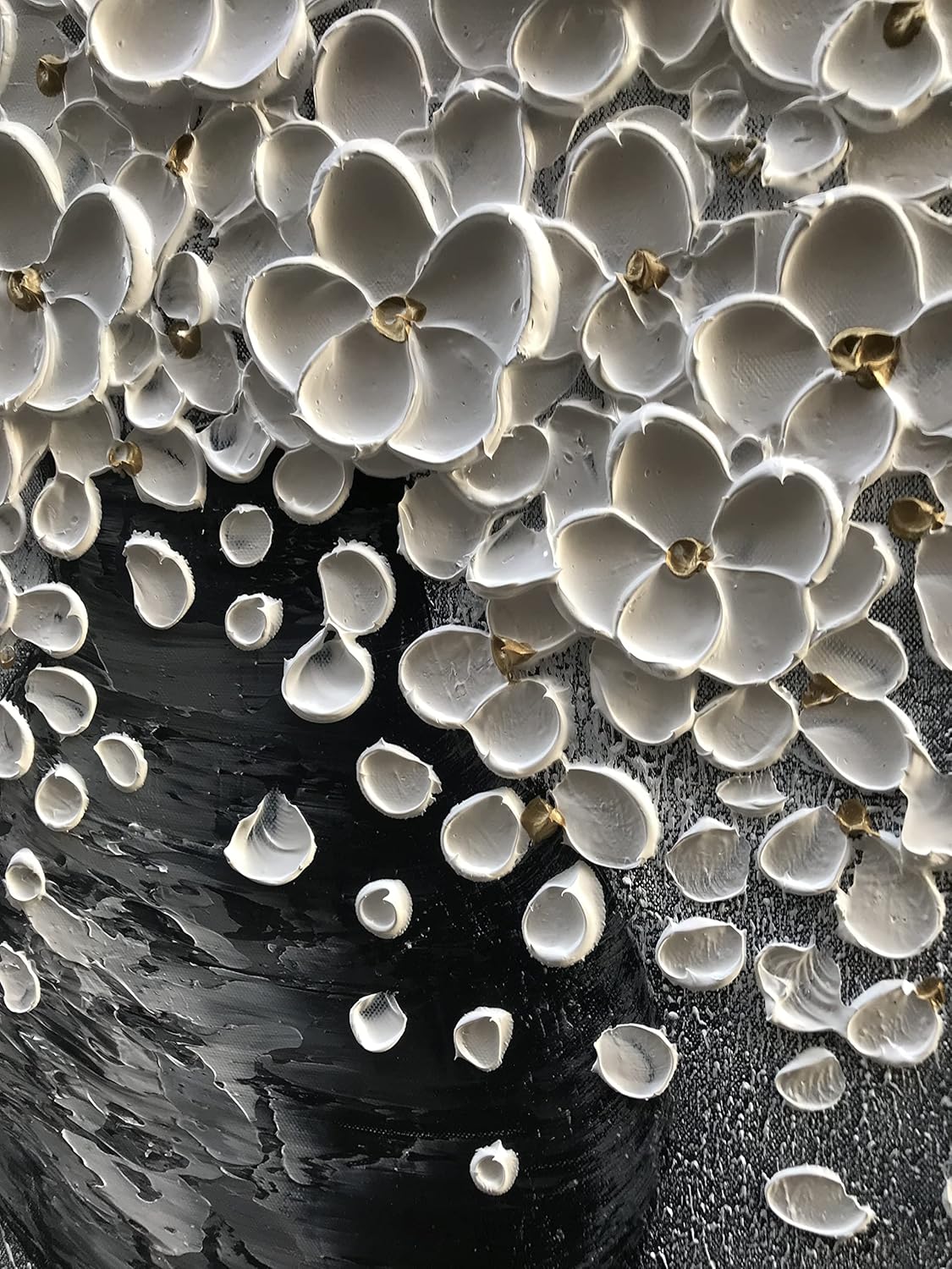 Canvas Wall Art Grey and white flower painting, 30x30 inchs modern flower tray knife painting, bedroom kitchen dining room living room office home wall decoration