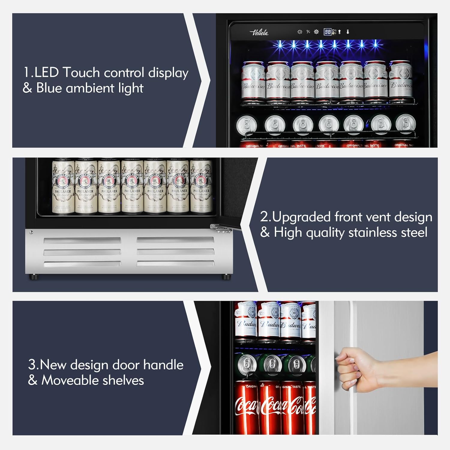 - ćUnder counter built-in/FreestandingćVelieta beverage refrigerator has the design of the front vent, you can install it directly under the Counter or freestanding. It can perfectly fit for 24inch space to be built-in. You can adjust the level and height of the refrigerator Via the Bottom feet.
