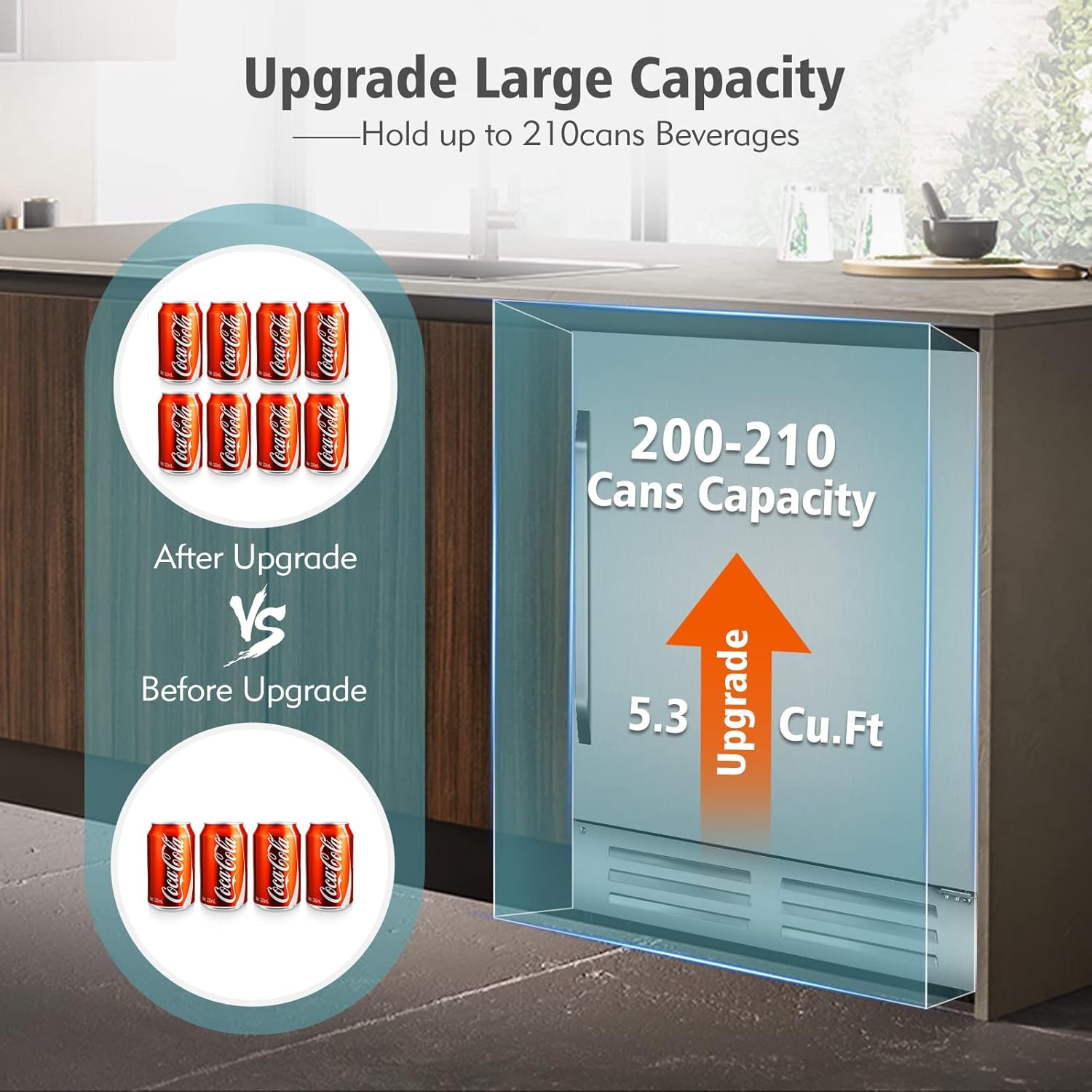24 Inch Outdoor Beverage Refrigerator Cooler,Stainless Steel Wide Refrigerator for 210 Cans,Fit Perfectly for 24" Space Built-in Counter or Freestanding with powerful and quiet cooling system