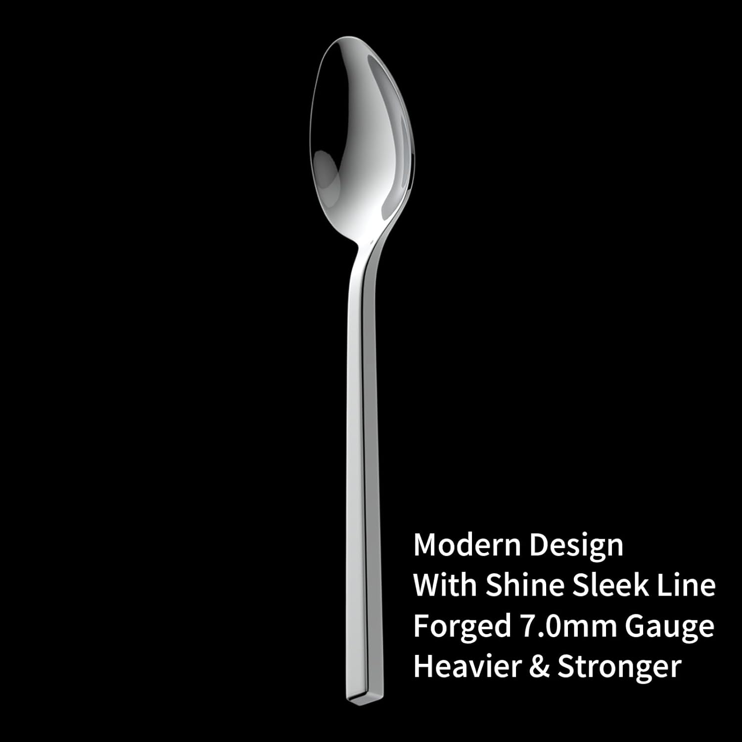 - DESIGN AND APPEARANCE: Classic square handle shape with mirror finish, natural and elegant design.Smooth and silk surface without grain, easy to clean and care in daily use. Crafted forged process, strong and durableļ¼so that the flatware set has a thicker texture