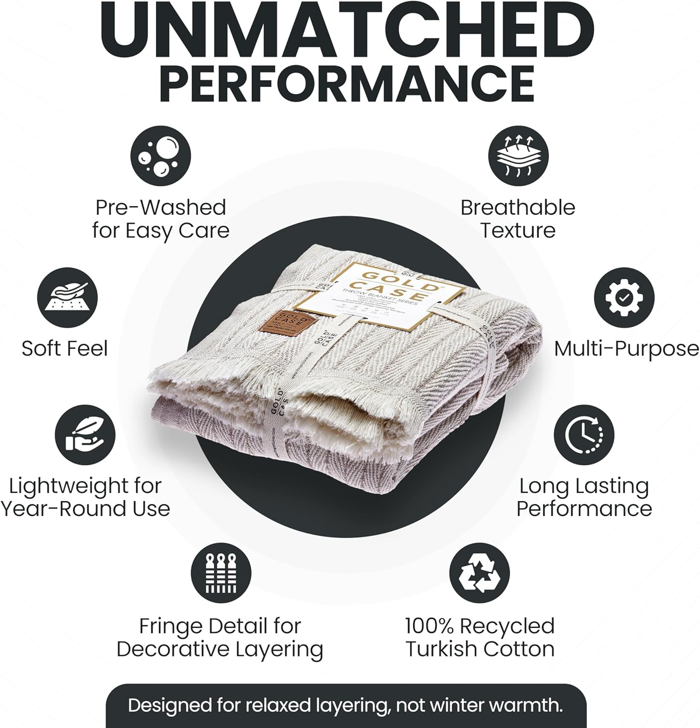 Gold Case Throw Blanket for Couch – 100% Recycled Turkish Cotton Blankets & Throws – Elegant Decorative Throw Blankets for Living Room Sofa – Woven Throws for Couch – Vintage Beige – 60x80