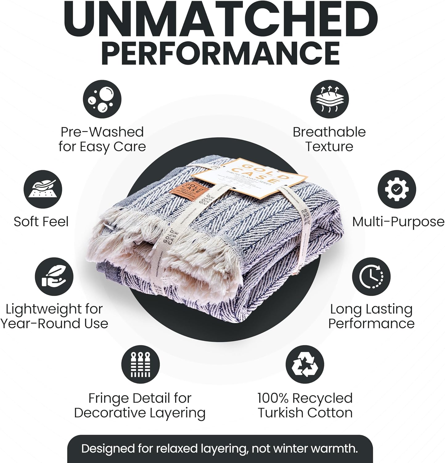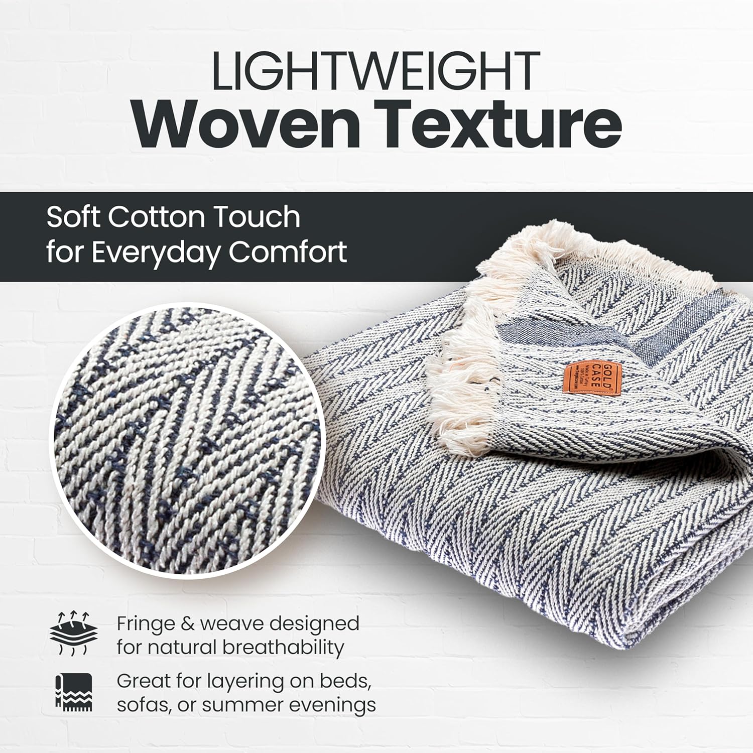 Gold Case Throw Blanket for Couch – 100% Recycled Turkish Cotton Blankets & Throws – Elegant Decorative Throw Blankets for Living Room Sofa – Woven Throws for Couch – Vintage Navy Blue – 60x80