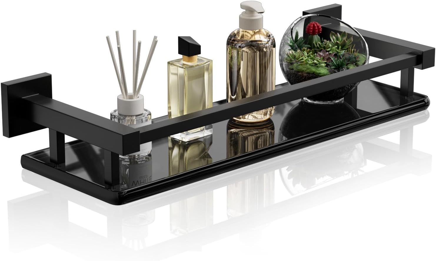 - CLEAR VIEWļ¼The transparent glass of our floating shelves for bathroom allows you to showcase your items while keeping your space looking uncluttered and open