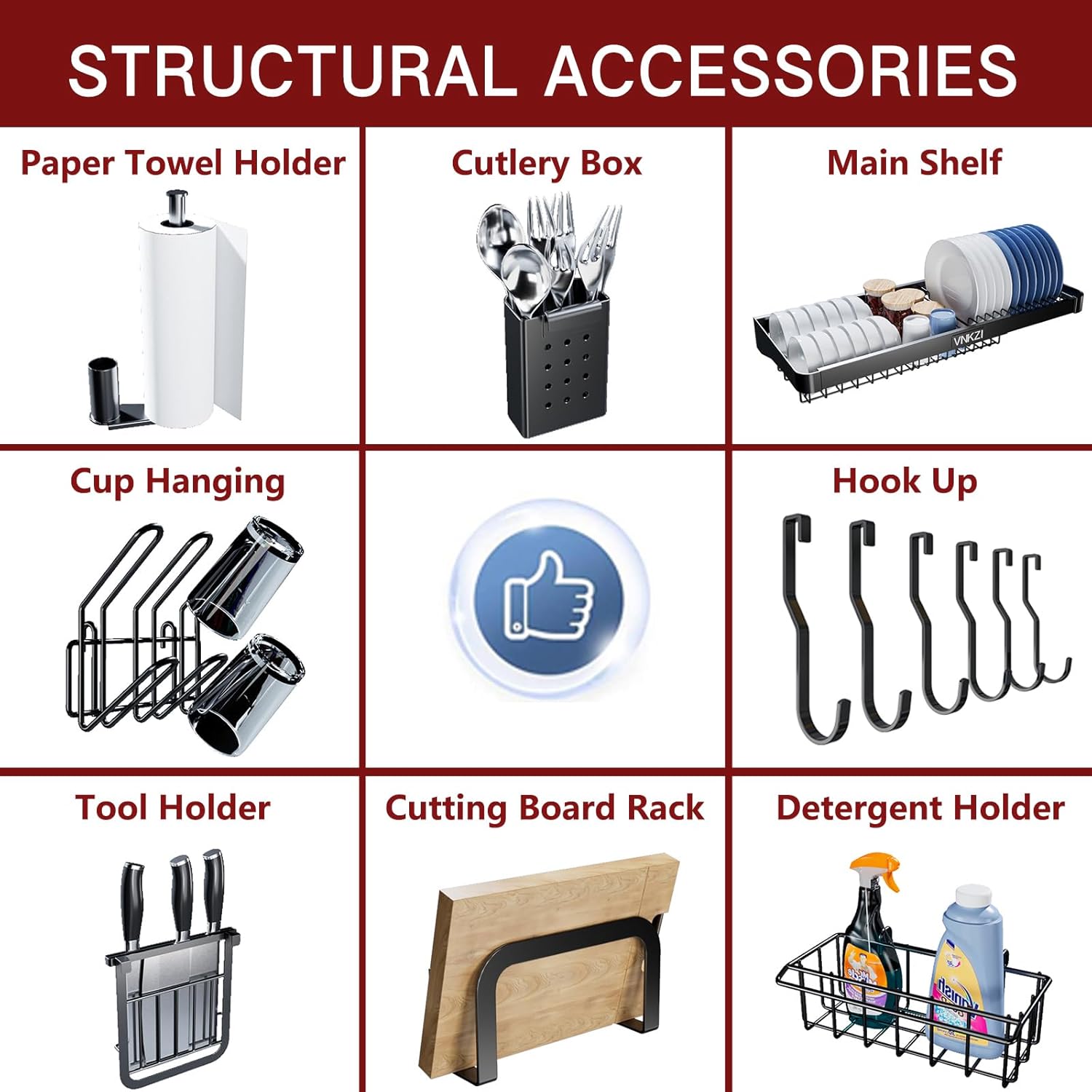 - MULTIFUNCTIONAL KITCHEN ORGANIZER: expandable rack provides more space without costing more counter top space making it very convenient. Can meet the needs of any kitchenware. It would be a great kitchen organizer. All the accessories you need are complete, including knife holder, storage basket, cutlery holder, cutting board rack, cup hanging, hook up, paper holder. (All accessories are made of stainless steel)