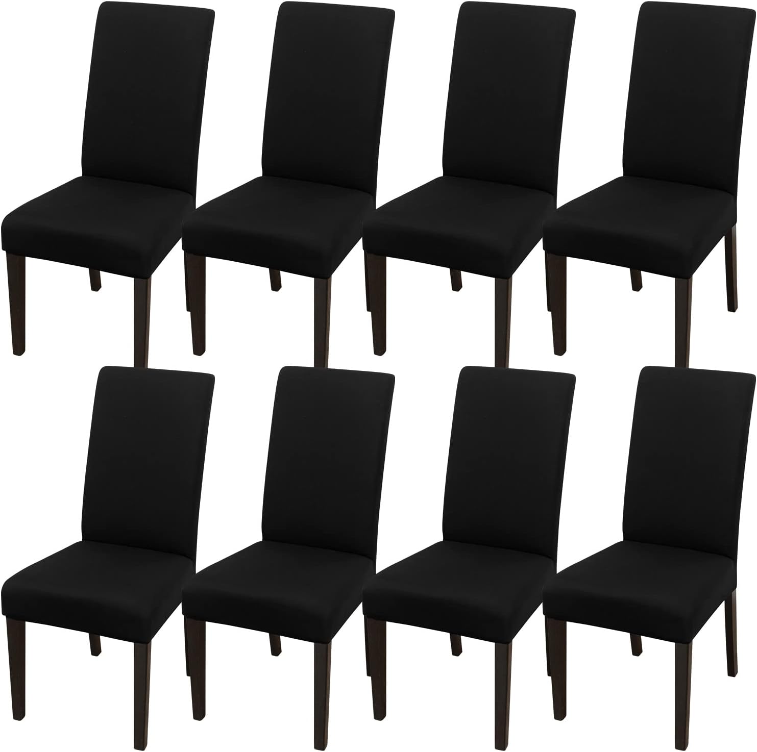 JQinHome Dining Room Chair Covers Set of 8, High Stretch Chair Slipcover Removable Washable Chair Seat Protector Cover for Home Party Hotel Wedding Ceremony (Black)