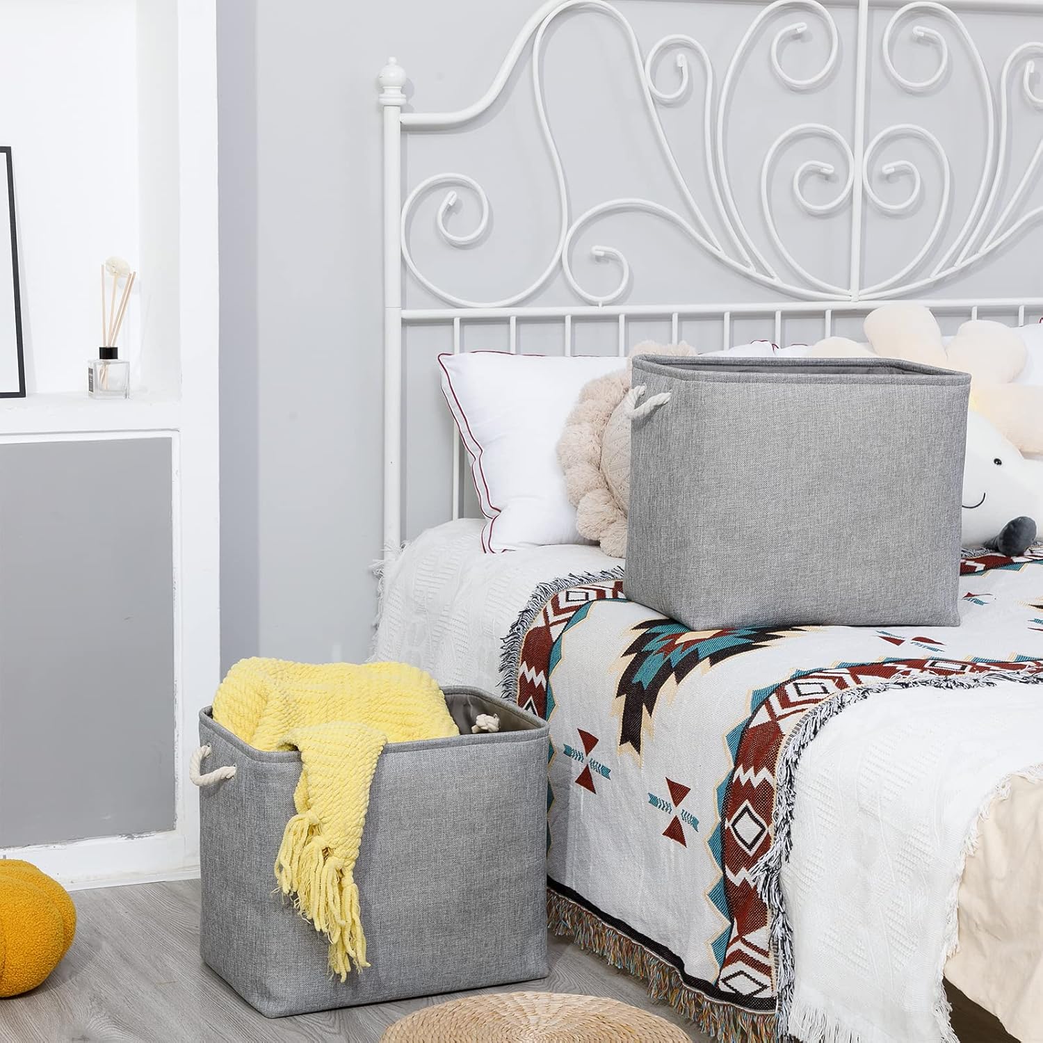 - [Cotton Rope Handles&Premium Fabric] Lightweight storage baskets with cotton rope handles, easy to move and more comfortable grip. Sturdy soft handles on both sides are convenient to retrieve from shelves. These storage baskets are made of durable fabric which is strong and lightweight