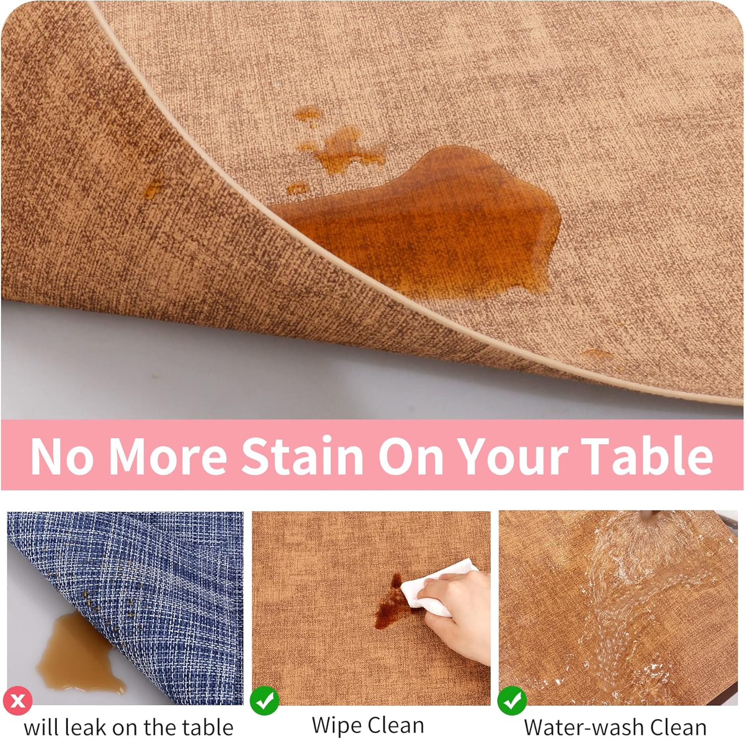 - EASY CARE: Designed for ease of use, these durable table mats withstand any spills and stains, making clean-up a breeze. Just with a simple wipe with a rag or a rinse under the tap, they'll be spotless and ready for your next meal