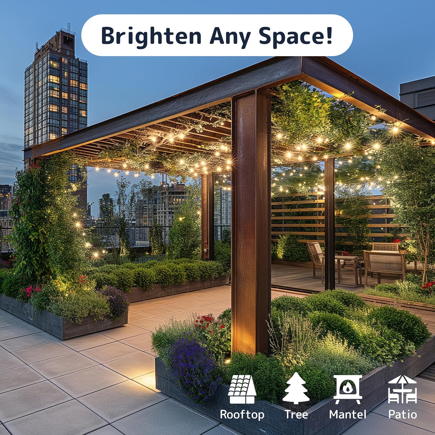 - Expandable Multi-Strand Design: Connect up to five sets of white christmas lights end-to-end; 2-inch bulb spacing offers full, even coverage for larger areas like fences, garlands, and patios