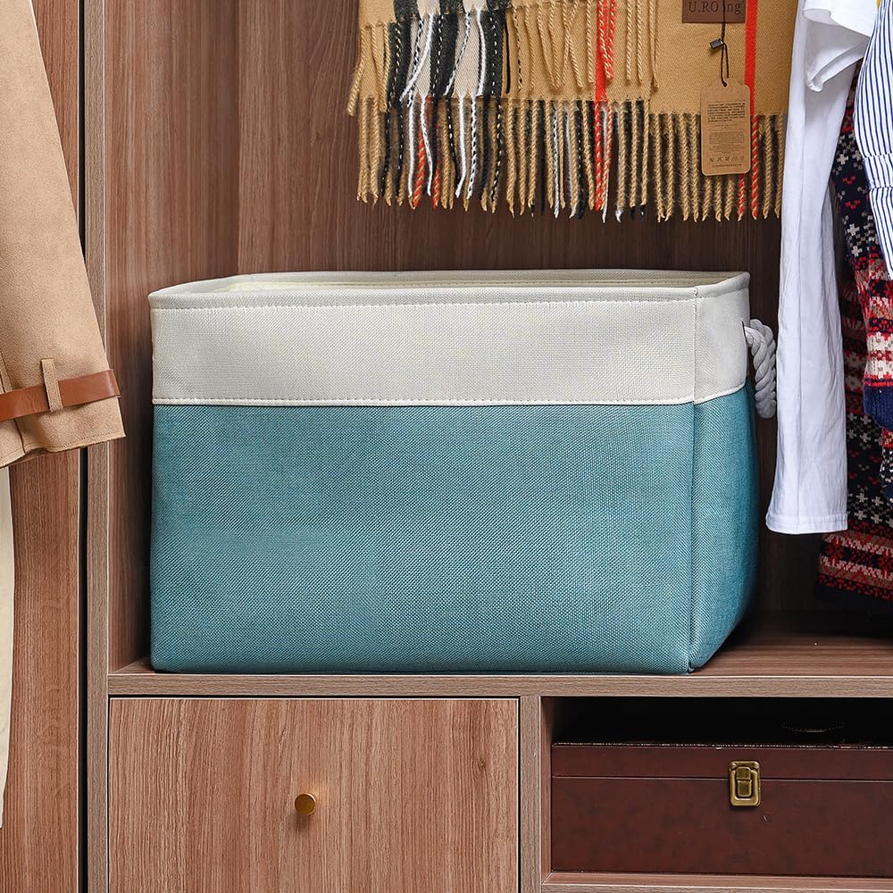 TheWarmHome Storage Bin for Shelves - Extra Jumbo 3 Pack 20.5L×15.7W×13.8H Storage Basket for Organizing, Fabrin Storage cubes with Drawstring Cover for Living Room Bedroom Decor Closet(White & Green