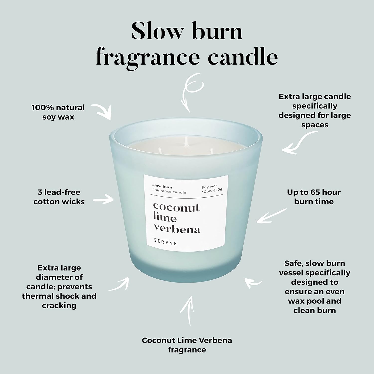 Hidden Label Large Scented Candle, Coconut Lime Verbena, 30oz 3 Wick Huge Candle, Serene Collection Slow Burn Natural Soy Candles for Home Scented