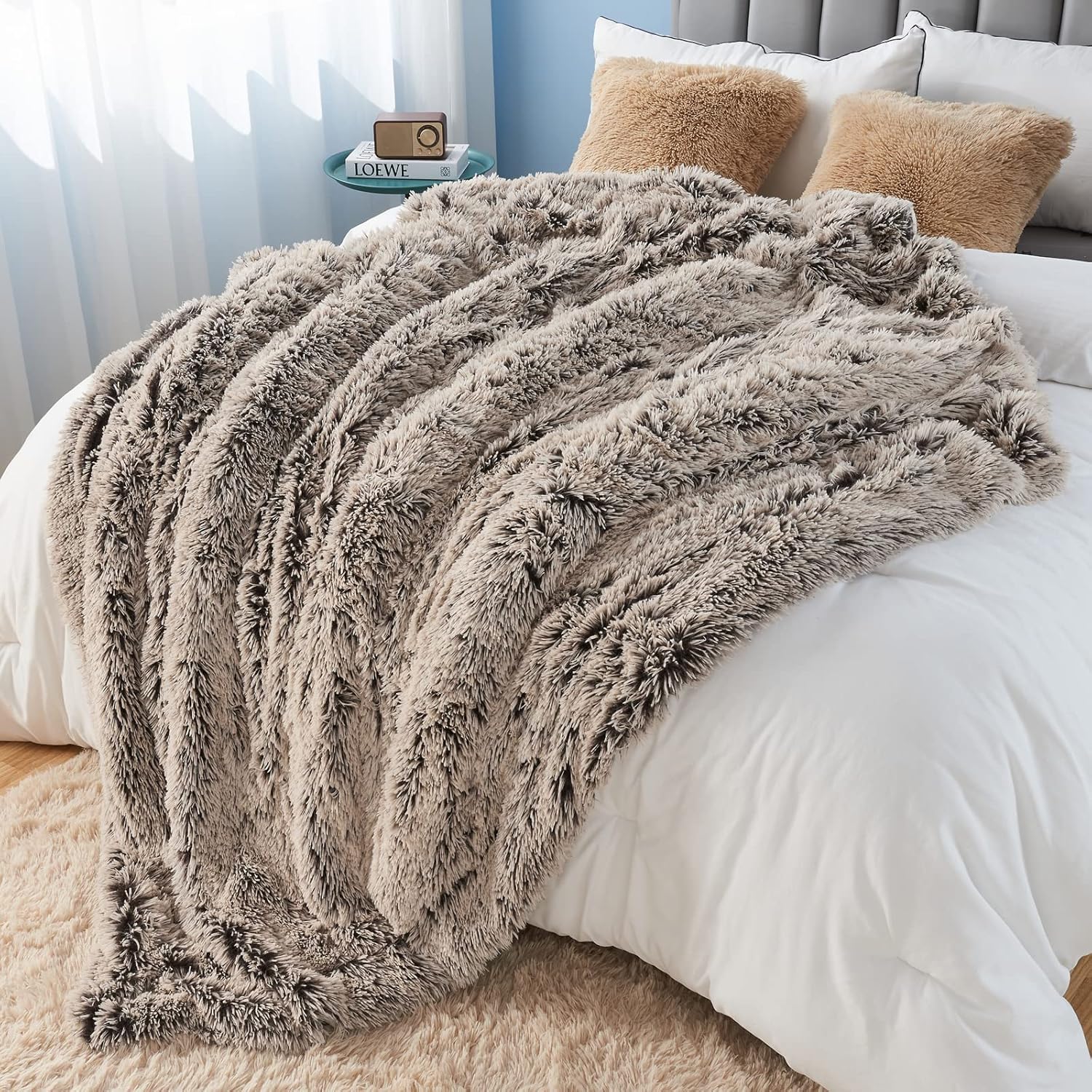 GONAAP Fuzzy Faux Fur Throw Blanket Twin Size Frosty Brown Super Soft Cozy Plush Fuzzy Shaggy Blanket for Couch Sofa Bed (Frosty Brown, Twin(60"x80"))