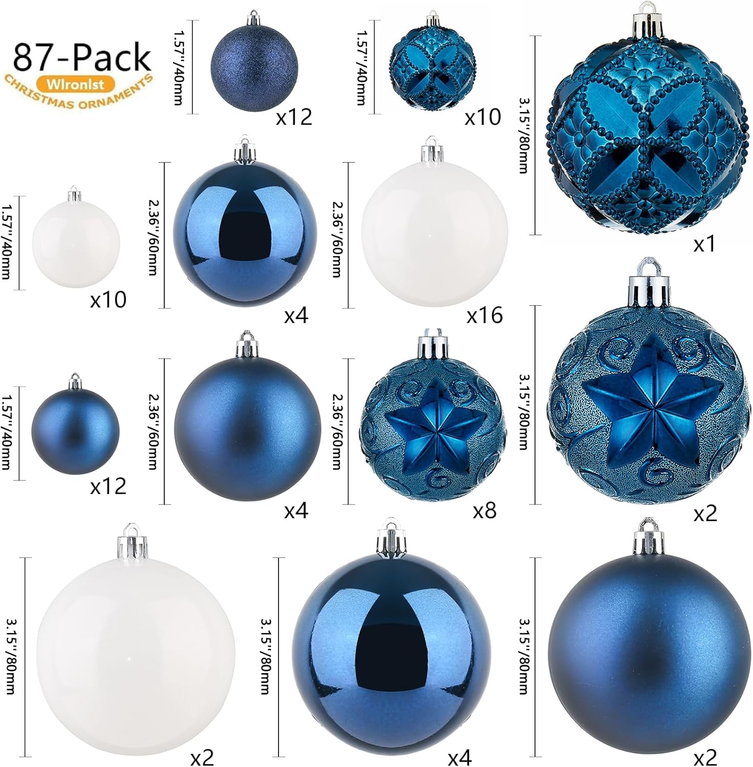 - 2023 NEW CHRISTMAS TREE DECORATIONS - In Wironlst store, our 2023 new designed Christmas ball ornaments set includes 87 pieces Christmas ball hanging ornaments allow you to build your collection quickly and decorate with more possibilities.