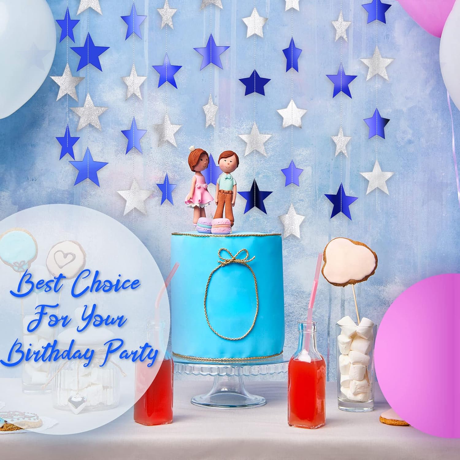 Patelai Glitter Star Garland Banner Decor 130 Feet Star Hanging Bunting Banner Twinkle Backdrop for Homecoming Classroom Wedding Birthday Halloween Christmas Party Supplies(Ocean Blue, Glitter Silver)