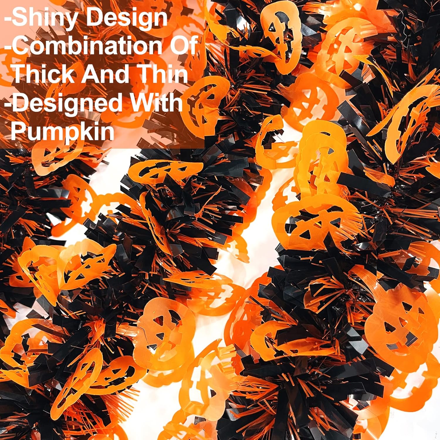 - Thick and Thin Tinsel Design: Special designed with black and orange, thick and thin tinsels to reflect light for extra sparkle, which looks layered and fluffy, shiny and spooky. Add a festival and scary atmosphere to your home