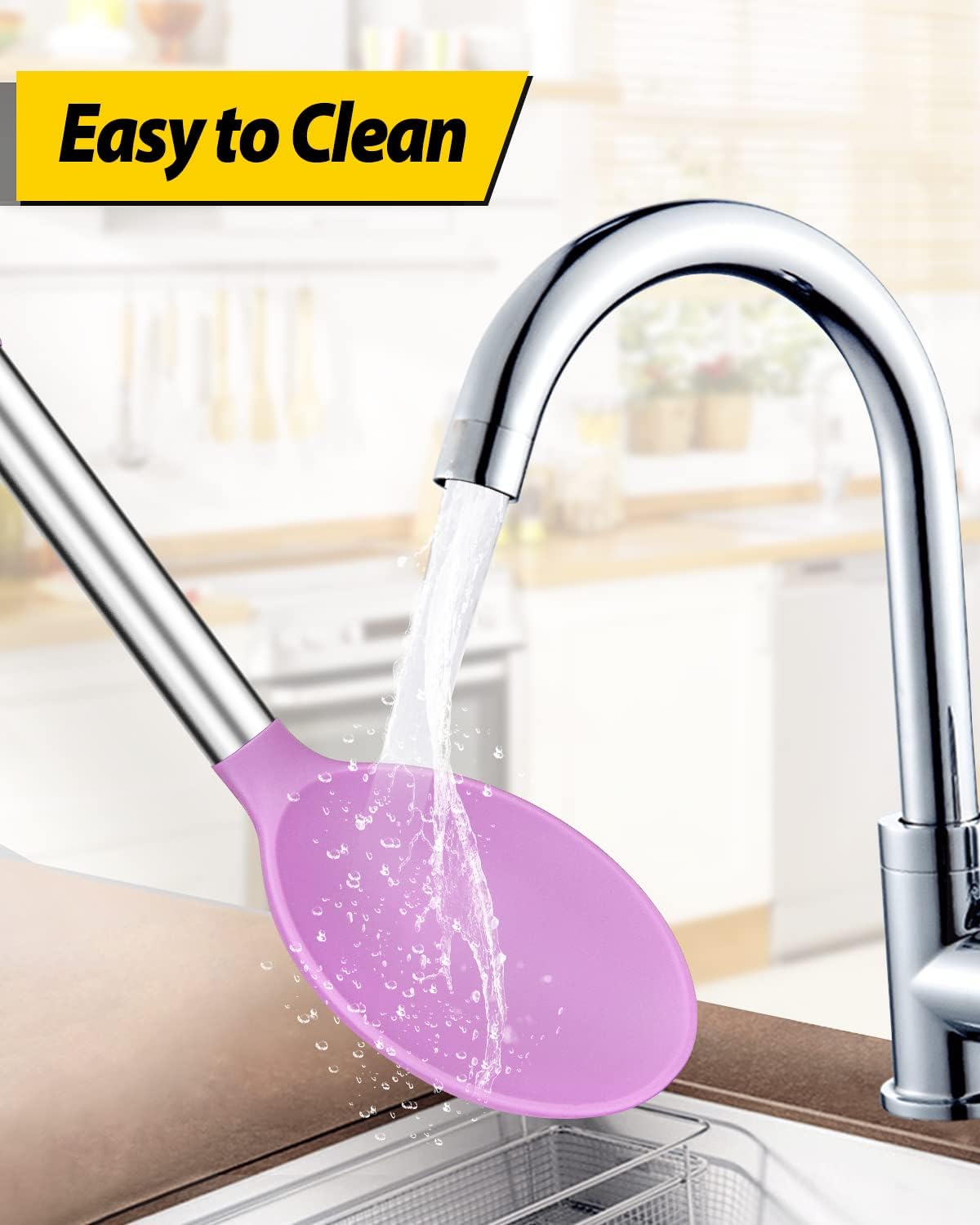 - More Safe and Healthy : Our silicone spoons are made of food-grade silicone, free of BPA;Even at high temperatures, there is no need to worry about melting or deforming;And the soft silicone head won't scratch the coating, it can better protect your pot
