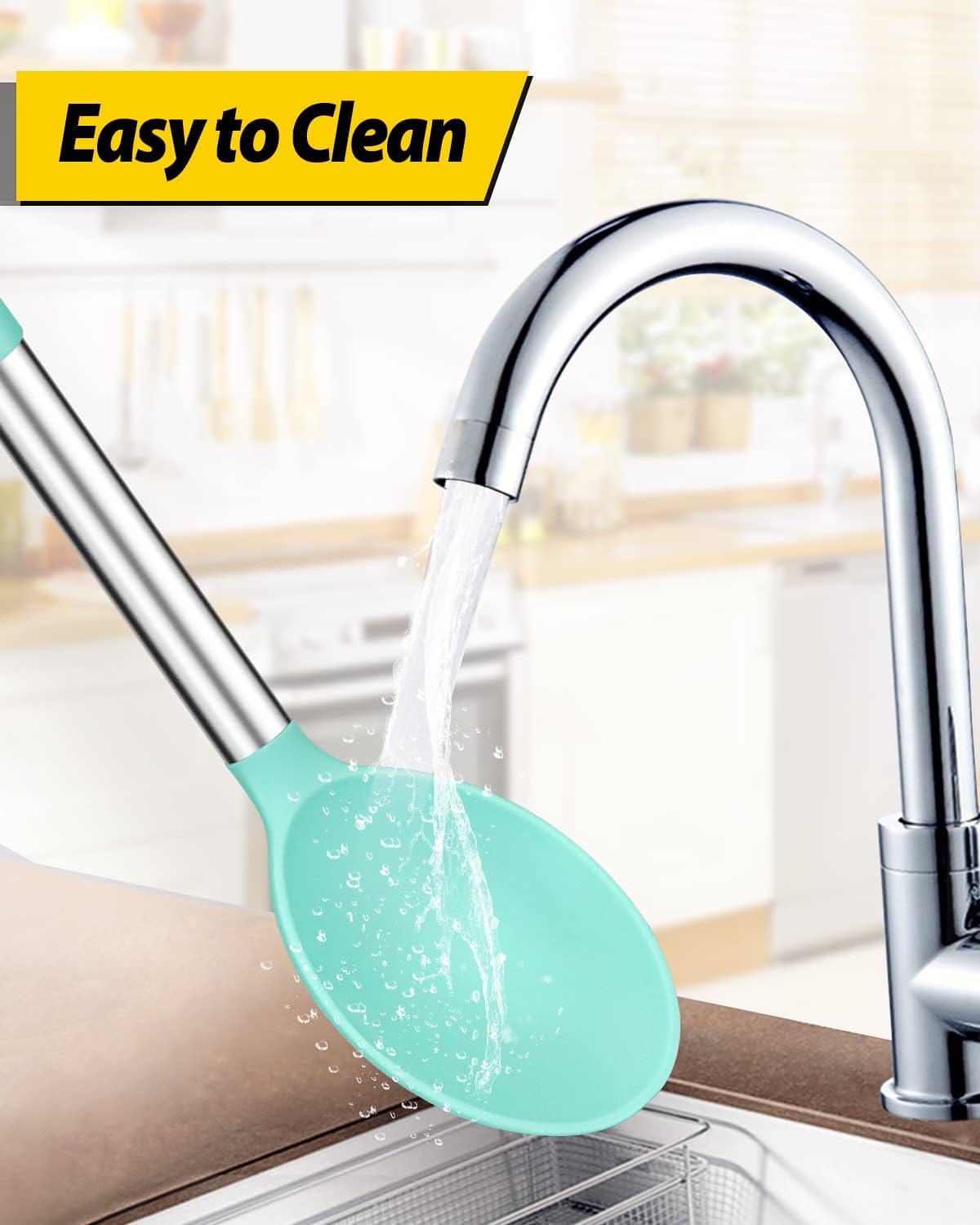 - More Safe and Healthy : Our silicone spoons are made of food-grade silicone, free of BPA;Even at high temperatures, there is no need to worry about melting or deforming;And the soft silicone head won't scratch the coating, it can better protect your pot