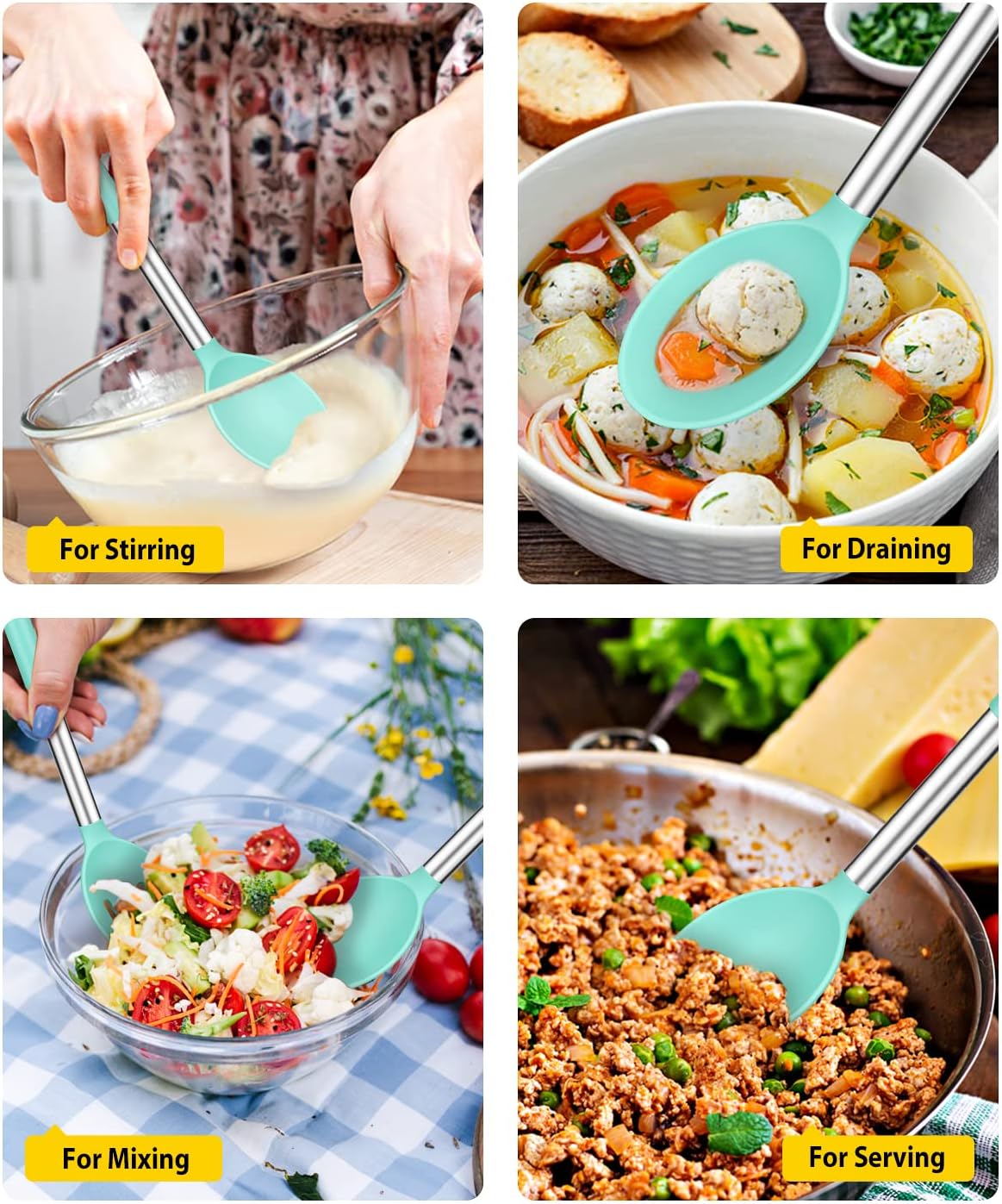 - Just Want To Provide The Ideas For You : Large cooking spoon used to hold food more convenient; Slotted Spoon can quickly drain the water; Whether it is used for draining or serving food, our large silicone cooking spoon will add more fun to your kitchen