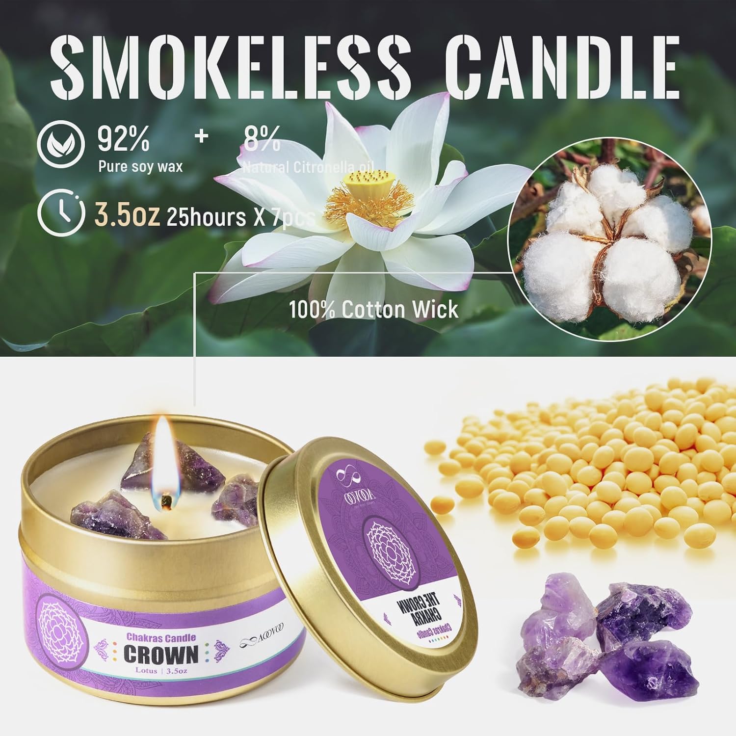- Soy Wax Candle: Differing from blended soy wax, our candles are 100% soy wax, promoting a healthier environment, especially for pets and families. 24.5 oz (3.5oz each) , lasting up to 200 hours of burn time.