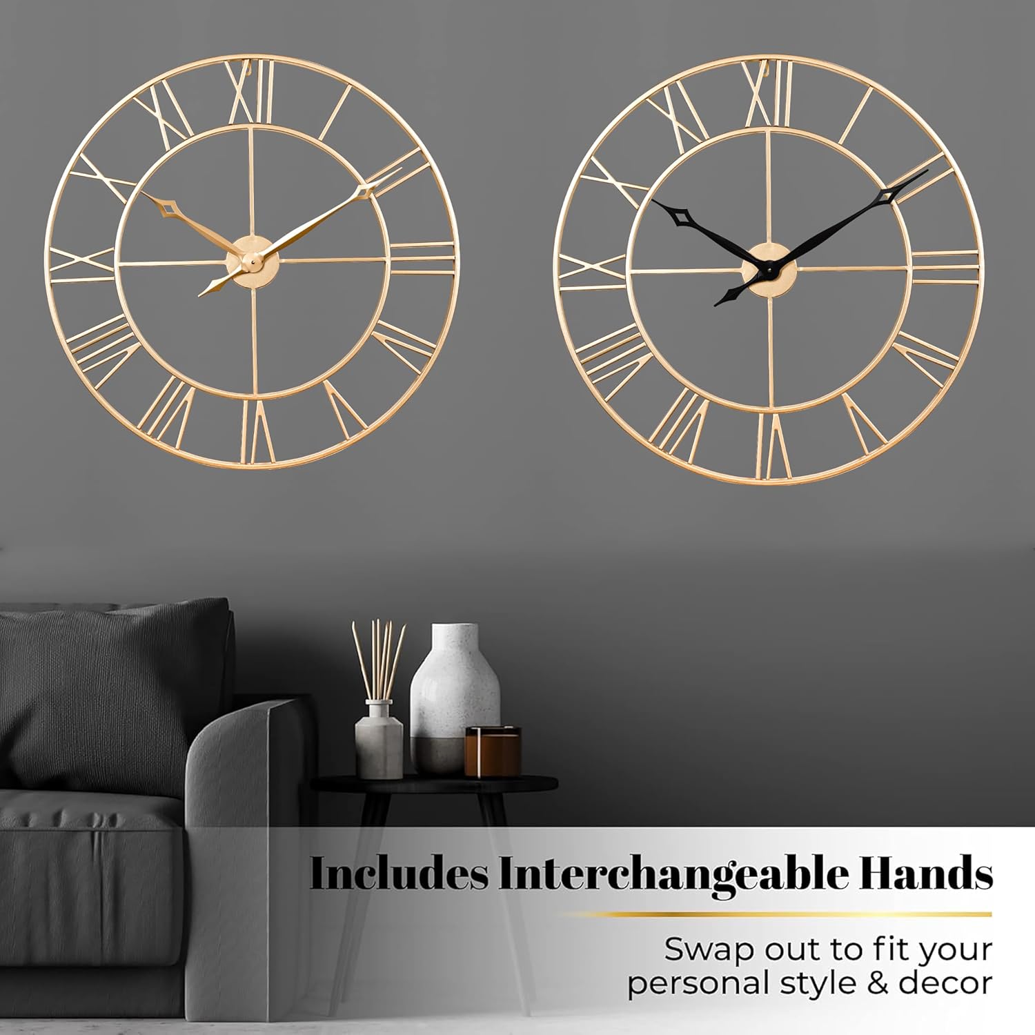 - [Easy to Read and Hang]-30" (75cm) Oversized large Roman numerals in contrast with aluminum large hands for easily reading. Simple design with a good performance. Package Comes with 1 set extra color interchangeable Clock Handsļ¼also included Invisible Nail Hangers for hanging