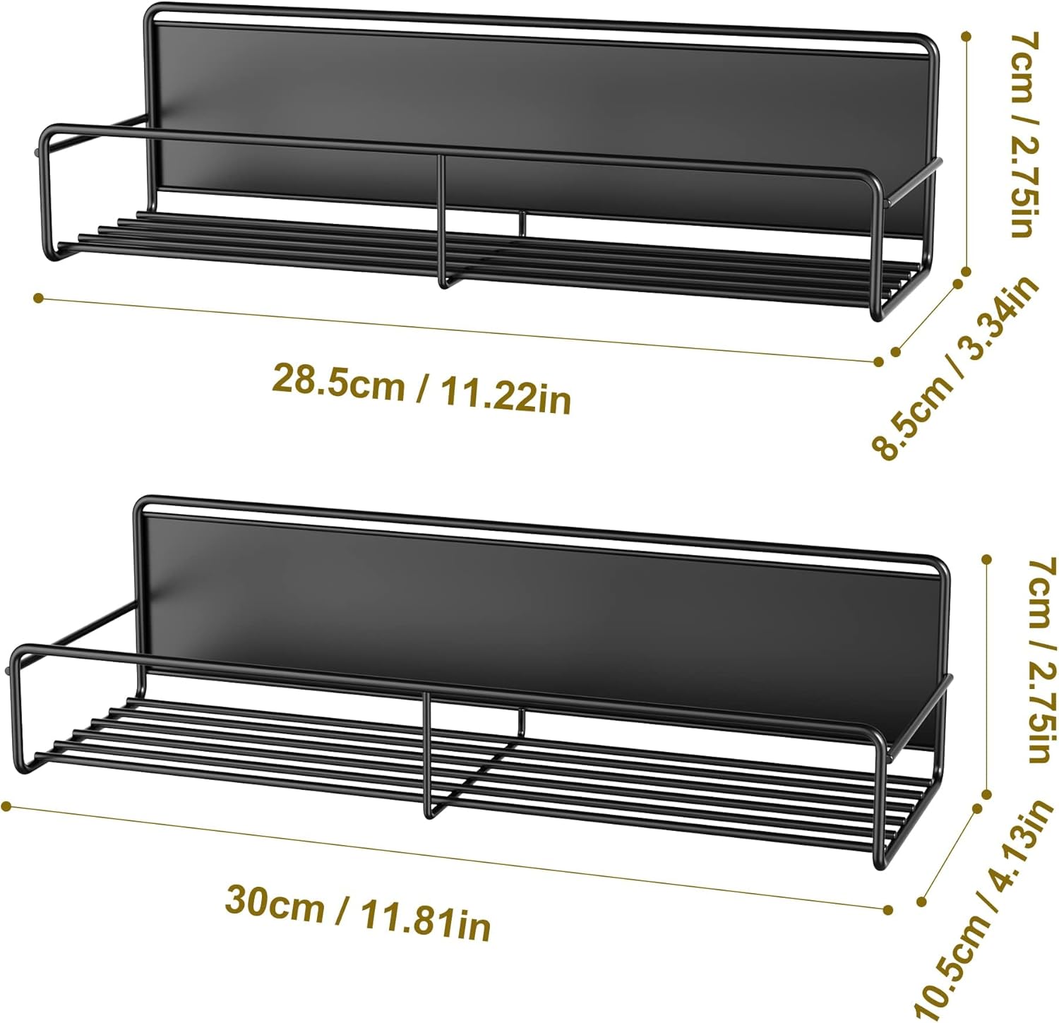 2 Pack Magnetic Spice Rack Organizer, Space Saver for Refrigerator and Microwave Oven, Magnetical Fridge Shelf for Jars, Seaoning, tins and Utensils Black