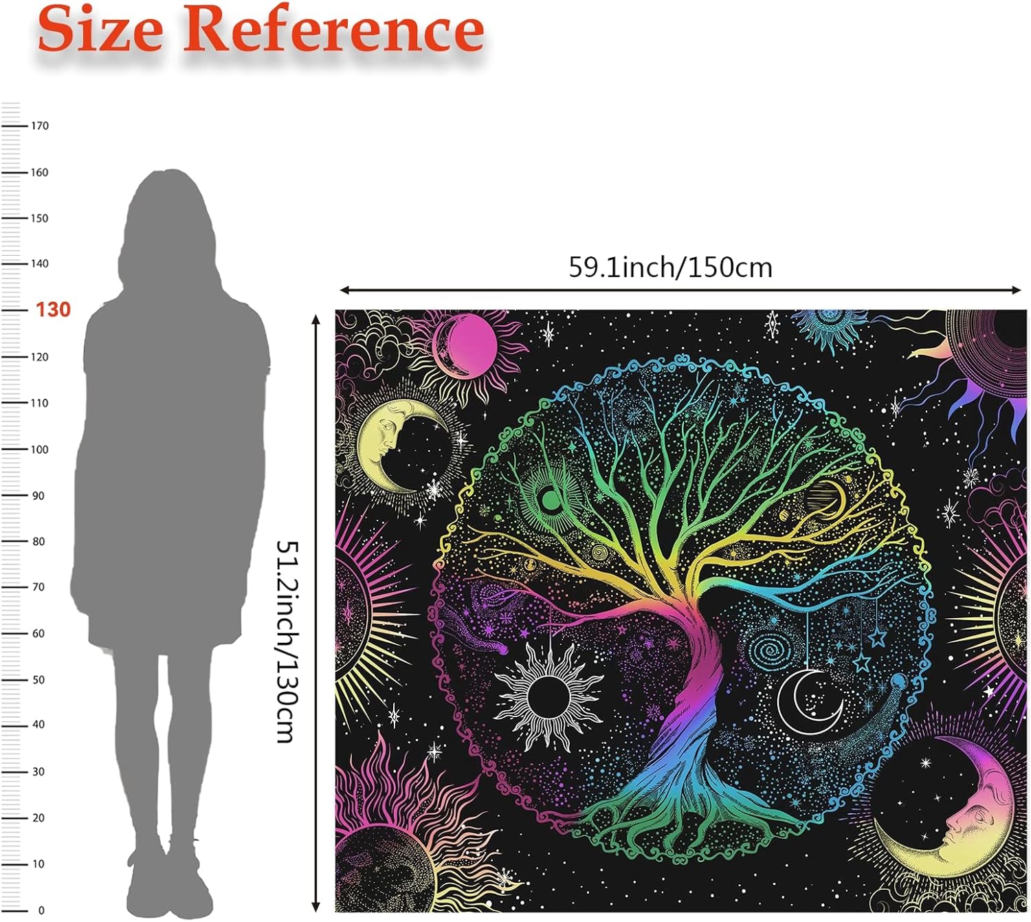 - This tapestry is unique design with tree, sun, moon, stars, and galaxy space elements. It's made from high-quality polyester fabric, which is skin-friendly, soft, lightweight, durable, and has no peculiar smell. It adopts HD-printing technology, non-fading. Feathering vivid colors, crisp lines and delicate hemming