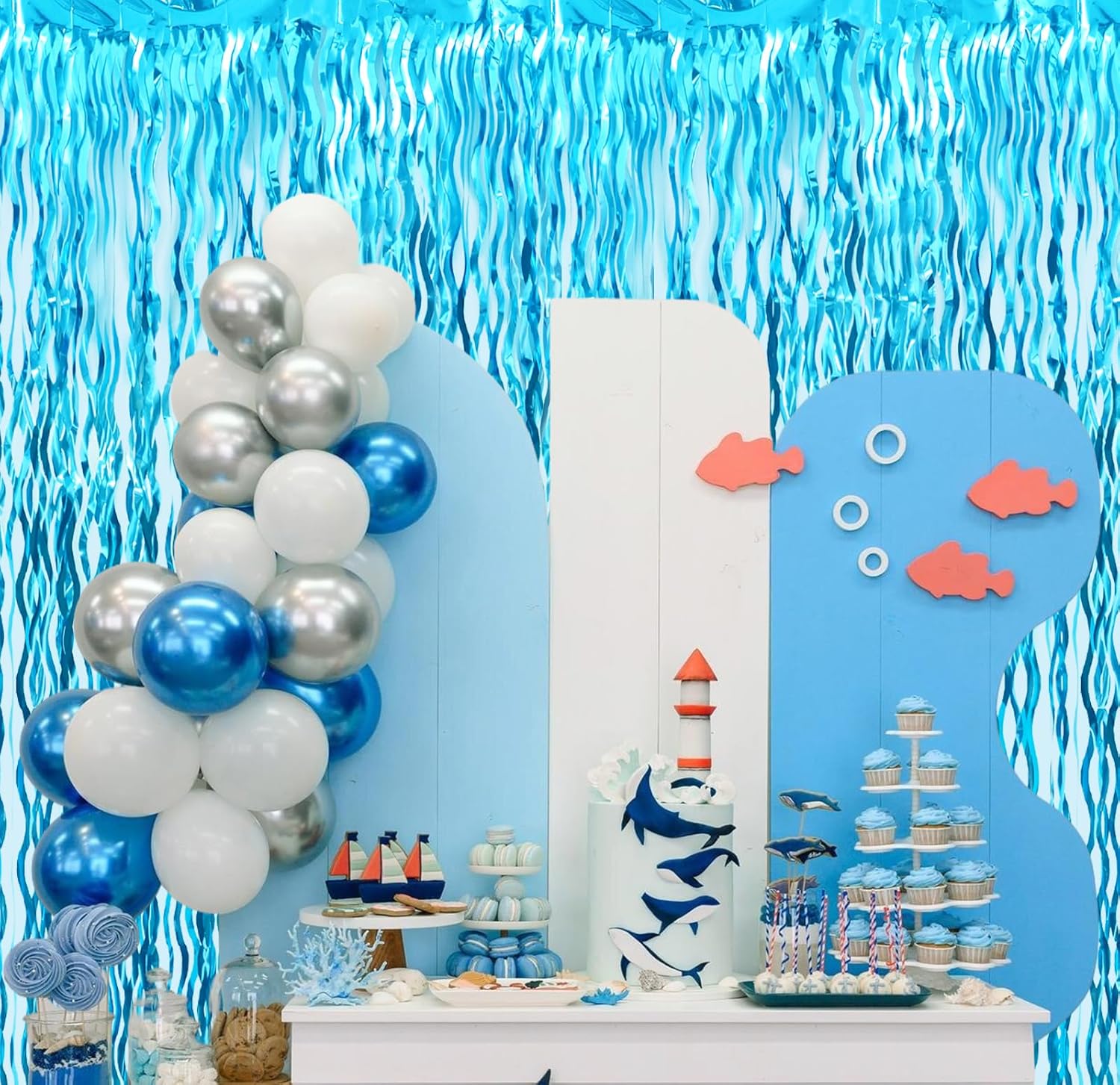 - Package Includes:1 pack wavy light blue foil fringe curtain,3.2 ft x 6.5 ft each,suitable for hanging on a door or coverage a wall fully