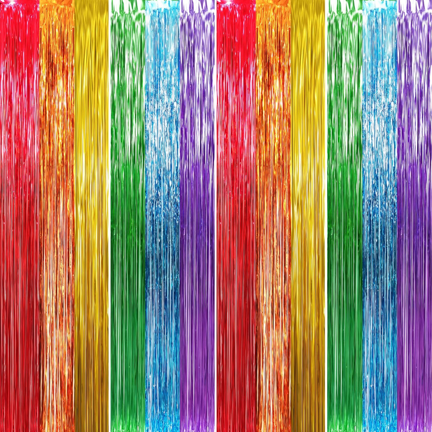 GOER 3.2 ft x 8.2 ft Metallic Tinsel Foil Fringe Curtains Party Photo Backdrop Party Streamers for Birthday,Graduation,New Year Eve Decorations Wedding Decor (4 Packs,Rainbow Colors)