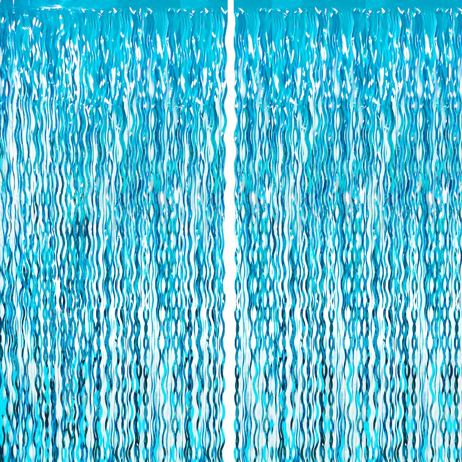 - Package Includes:2 pack wavy light blue foil fringe curtains,3.2 ft x 6.5 ft each,suitable for hanging on a door or coverage a wall fully