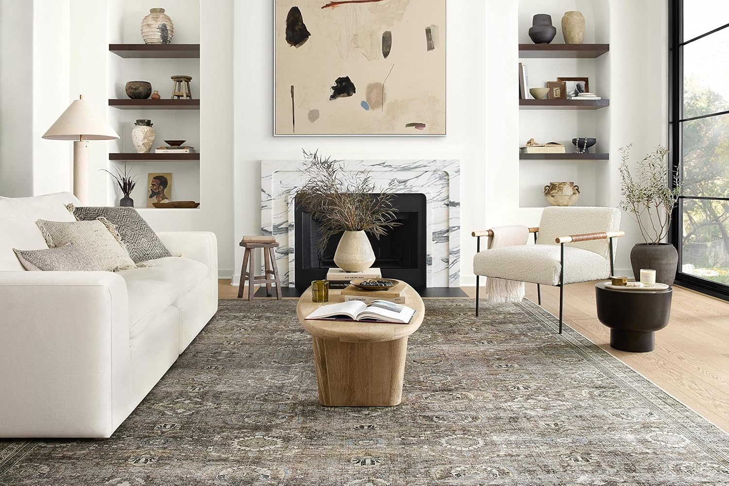 Loloi Layla Collection LAY-13 Antique/Moss 9'-6" x 14' .13" Thick Area Rug, Soft, Durable, Vintage Inspired, Distressed, Low Pile, Non-Shedding, Easy Clean, Printed, Living Room Rug