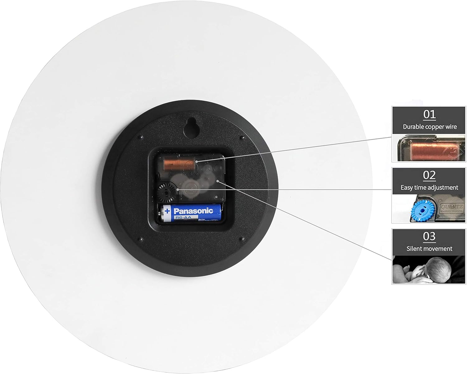 - Clock is completely silent thanks to a special Silent Quartz Mechanism that features a continuous, high torque smooth sweep motion that completely eliminates any ticking noise which may distract or interrupt you or others in the room.